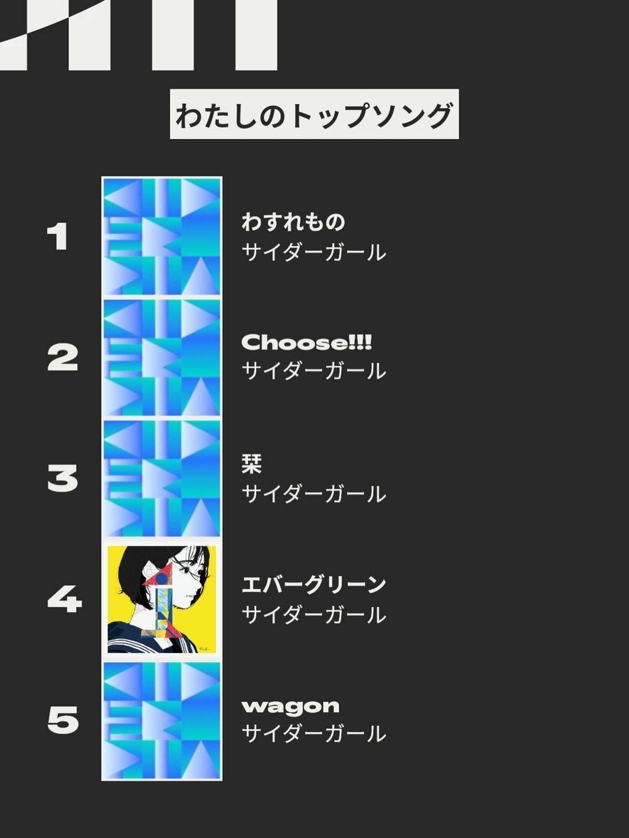 わたしの2025トップソング🎧 どうだっ!サイダガ聴いてる聴いてるって言いながら証明できるものがなかったけど、これで胸張って言える!😭✊🏻とにかくCIDERPIAが好きすぎる2025年でしたよぉ🫰🏻💙 知さん、ゆりんさん、フジムラさん、サイダーガールがだいすきー!!( C_G)🥇🫧 #サイダーガール pic.x.com/kOCDRu3LUr