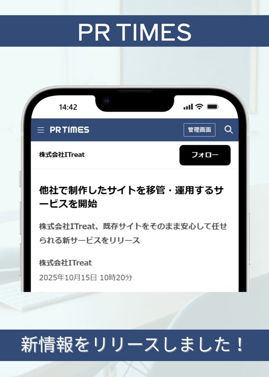 📢【PR TIMESに新しい記事を掲載しました】 他社で制作されたWebサイトをそのまま引き継ぎ、保守・更新・解析までをワンストップで支援する「サイト引継ぎサポート」サービスを開始しました。 詳しくは #PRTIMES の記事をご覧ください👇 prtimes.jp/main/html/rd/p… #ITreat #Web運用 #サイト管理 #岐阜 pic.x.com/QypgZ3BULC