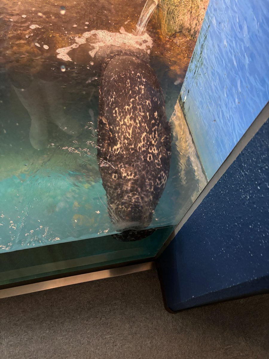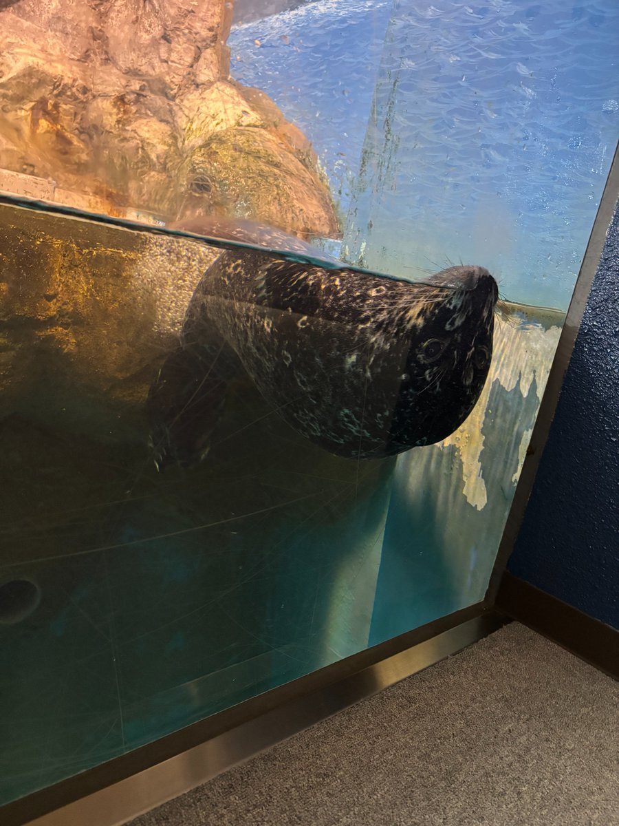 珍しい体勢で展示プールにいるサツキです! 思わずパシャリ☆ #浅虫水族館 #ゼニガタアザラシ #サツキ pic.x.com/EeDhu1wtTH