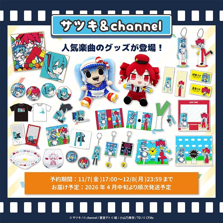 【📢再々販売のお知らせ】 ボカロP「#サツキ(@32ki_May )」と「#channel(@x_cast_x )」が手掛けた人気楽曲のグッズが再々販売中✨ ・予約販売期間:12/8(月)23:59まで ・お届け予定日:4月中旬~ #初音ミク #重音テト pic.x.com/fCyK1p52ns