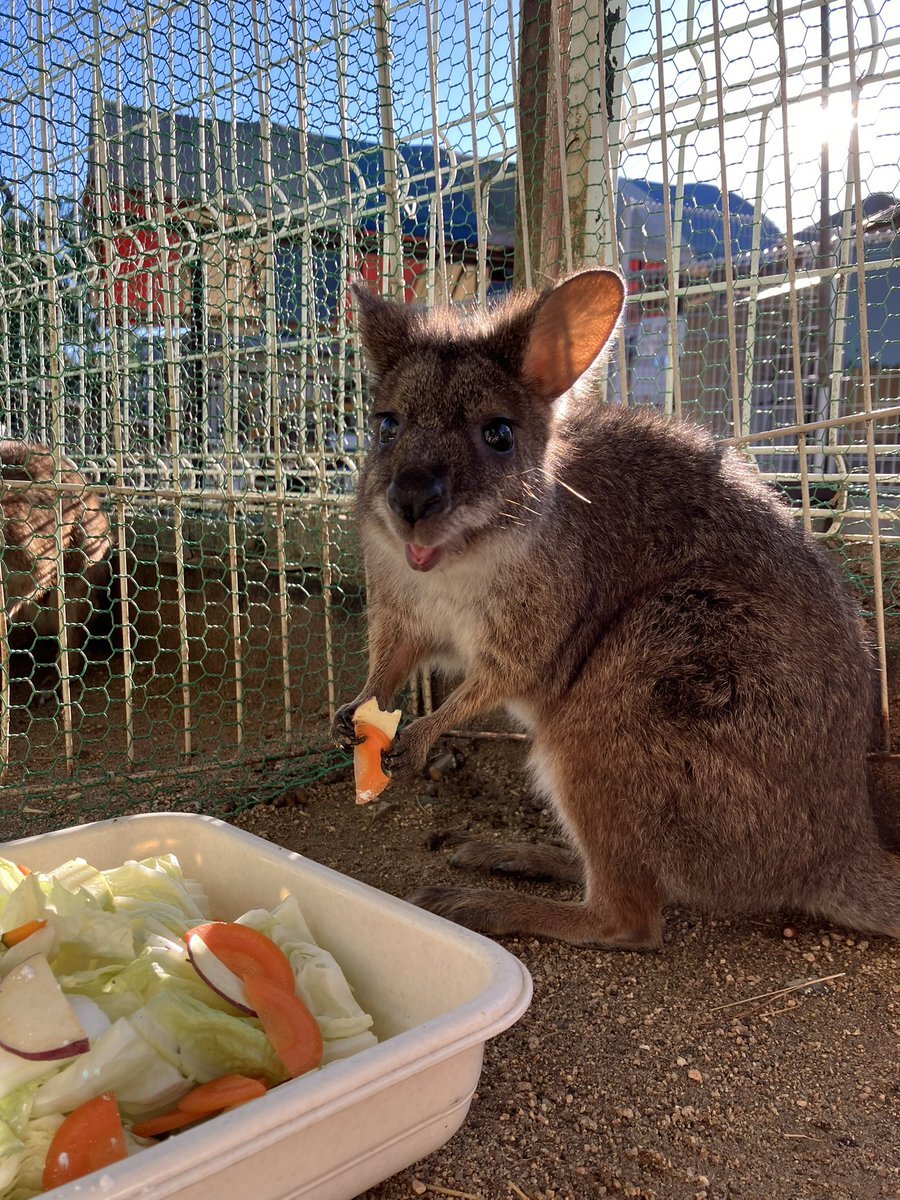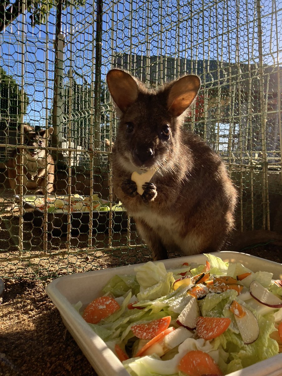 ファンの方に頂いたサツマイモを使わせて頂きました😊🍠 美味しそうに食べてくれています🦘✨ #岡山 #池田動物園 #岡山観光 #パルマワラビー #サツキ #サツマイモ pic.x.com/IjK6fPMHke