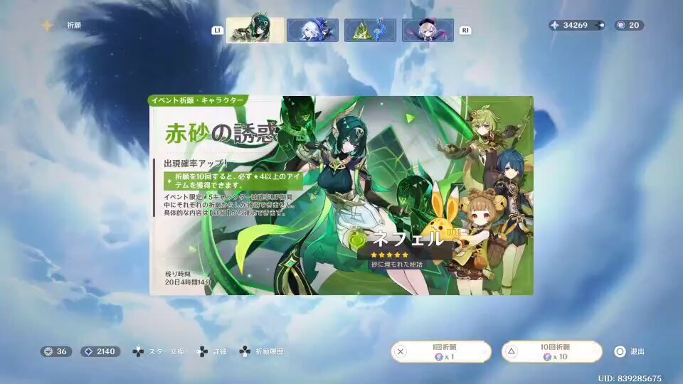 10連7回目、すり抜け回避演出で無事にネフェルお迎えできた(^^) #原神 #サブ垢 #完全無課金 pic.x.com/Q8yDkgRQzz