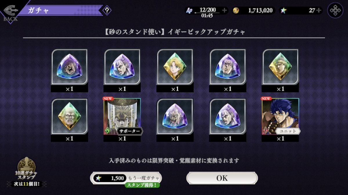 90連でURが3体 1体は未所持キャラ(カーズ)、2体は被り(亀、アナスイ) 今は石が無くて引けないが…溜まったら速攻引く!!次の10連にすべてを懸ける!! イギー来い!! #オラドラ #サブ垢 pic.x.com/PXuHySJhSg