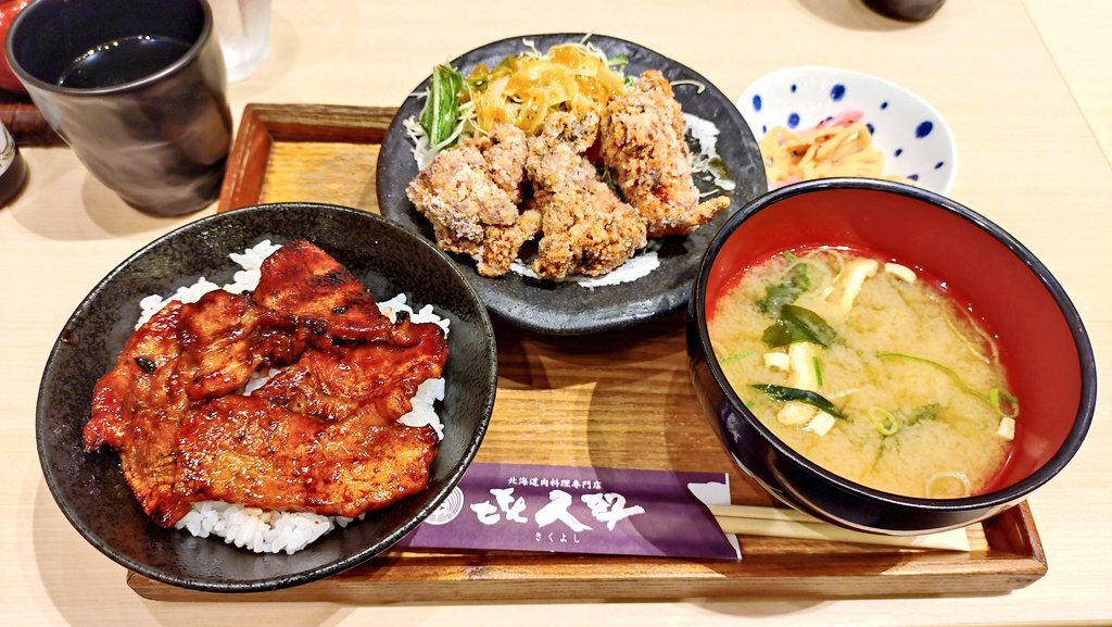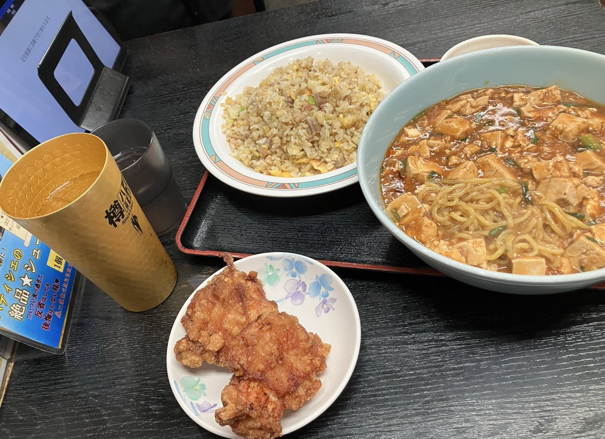 てなわけで 寒くなってきたし明日休みだし 精をつけるために 布袋 本店 最強セット(麻婆麺と #ザンギ 2個) 半炒飯 大盛(謎の注文、可能だった) ゆず酒ソーダ割り pic.x.com/cio9PIiPRz x.com/havane69/statu…