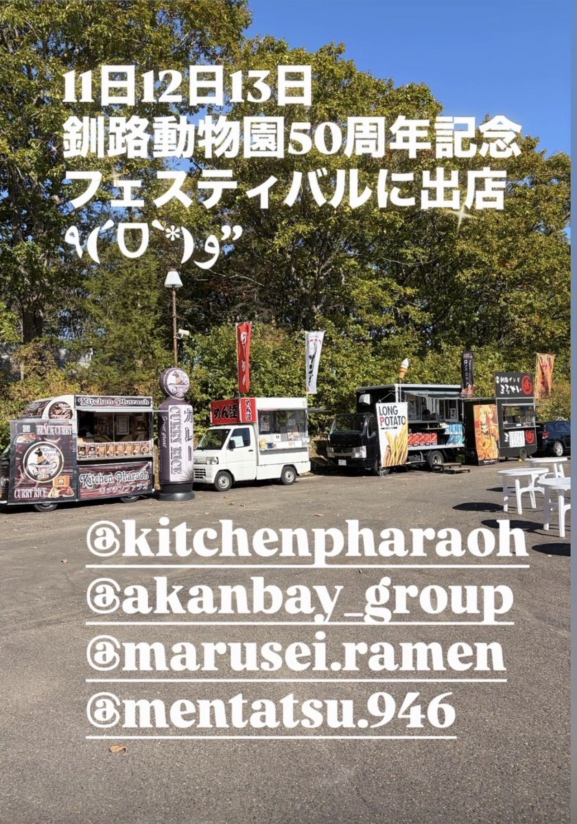 今日のめん達号は釧路動物園50周年記念フェスティバルに出店٩(ˊᗜˋ*)و” 9:30~16:30まで 益浦の店舗は休まず営業 皆さまのお越しお待ちしております(⋆ᴗ͈ˬᴗ͈)” #釧路動物園 #50周年記念フェスティバル #遊園地無料開放 #ラーメン #ザンギ #めん達号は正門入口そば #中央広場にて出店☀️ pic.x.com/QNQiTBE5Oz