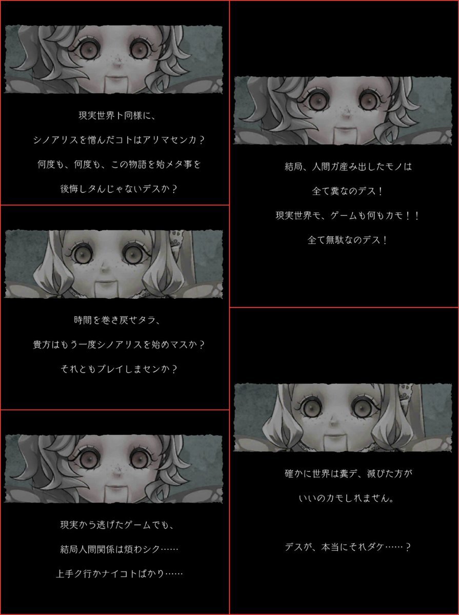 正義のゾウフ—別章:精霊奉葬(淫蠍篇) 「都是CPU角色要怎樣打啦,」人魚姬繼續抱怨著,「到底能不能通關的呀?要是不能過關那我不是太悲哀了嗎?」 penana.com/article/1947501 blossoming-faded.blog/archives/236 archiveofourown.org/works/72176741… #死亡愛麗絲 #SINoALICE #同人 #シノアリス