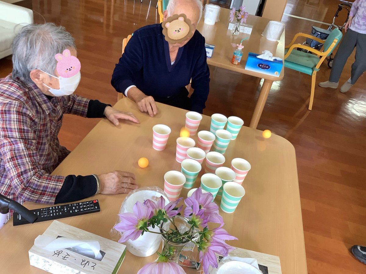 コップにピンポン玉を入れるゲーム🏓 力の入れ具合が難しい 何個入るか❓ 勝負‼️ #特養 #ショートステイ #ピンポン玉 介護職員募集中🏓  ☎︎0297-60-4166 詳しくはホームページから pic.x.com/NDxvjVAHDH