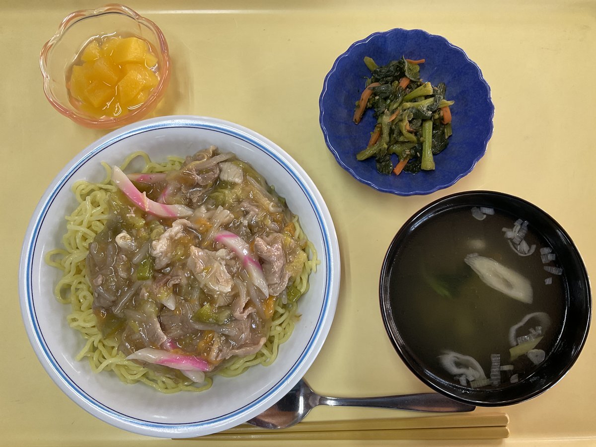 本日のくにたち苑のお昼の献立。あんかけ焼きそば、ごま醤油和え、中華スープ、黄桃缶。週に1回は麺料理の提となります。個人的にあんかけ焼きそば大好き😋 #特養 #デイサービス #ショートステイ #あんかけ焼きそば pic.x.com/TzakBq4Ows