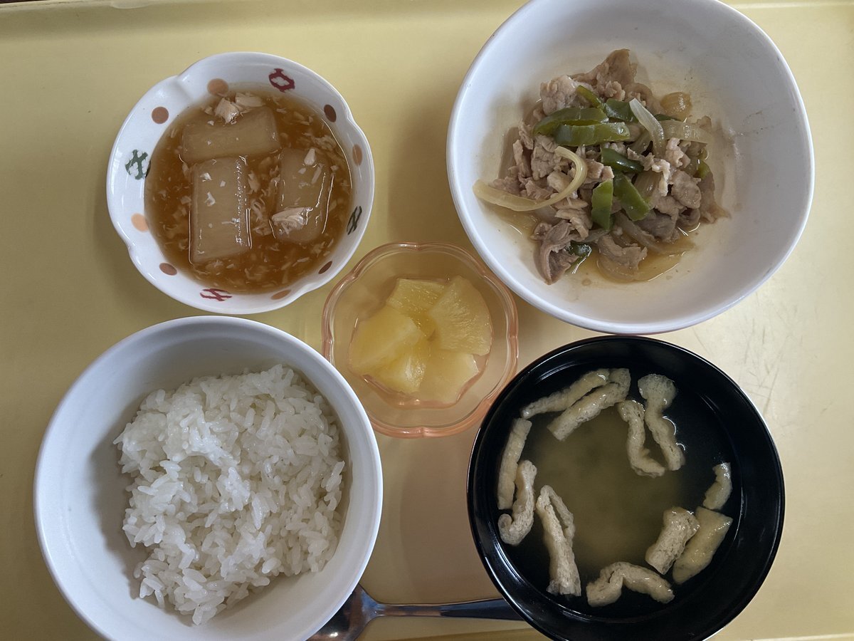 くにたち苑の本日のお昼は、御飯、豚肉のオイスター炒め、冬瓜の帆立風あん、味噌汁、パイン缶です。豚肉はビタミンB1が非常に豊富で、糖質代謝を助け、疲労回復に効果的です。 #特養 #デイサービス #ショートステイ #オイスター炒め #豚肉 #冬瓜 pic.x.com/eR7lRI3q1C