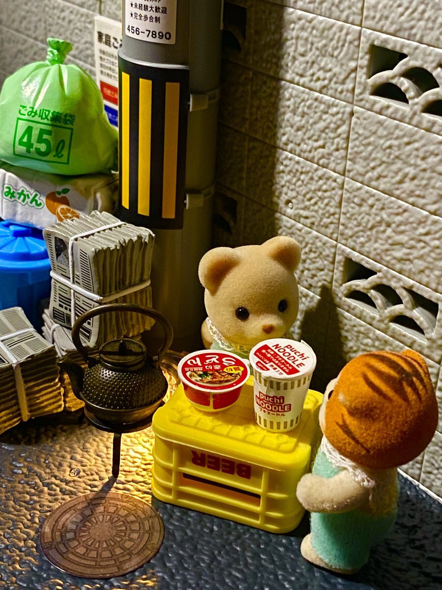 「寒い日に外で食べるカップラーメンは最高だね!」 #シルバニアファミリー pic.x.com/90hb7lIyb5