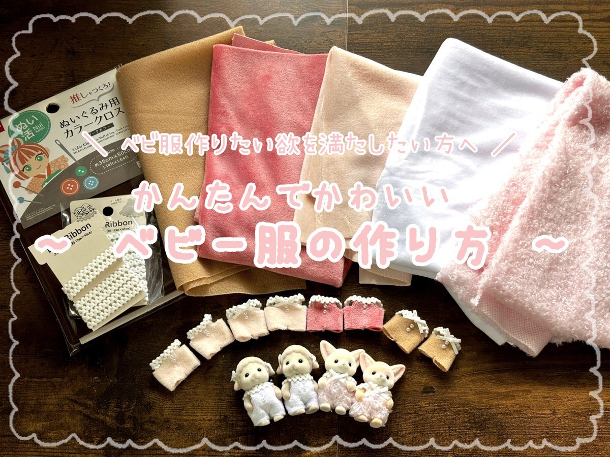 \ベビ服作りたい欲、満たしませんか?/ 🎀かんたん&かわいい!ベビー服の作り方🍼 【まずは好きなカラークロスを用意しよう】 ・片面起毛タイプがおすすめ ・切りっぱなしでもほつれにくいよ◎ ・ダイソー、セリア、手芸屋さんの“推しぬい・ぬい活”コーナーで探してみてね! 【肩ひも】