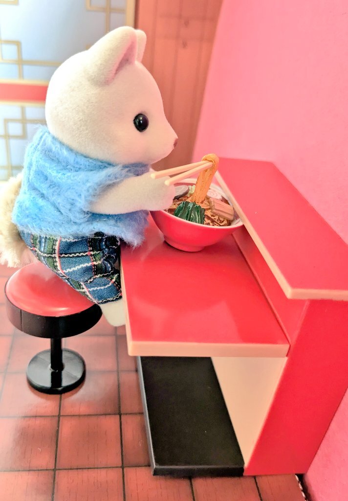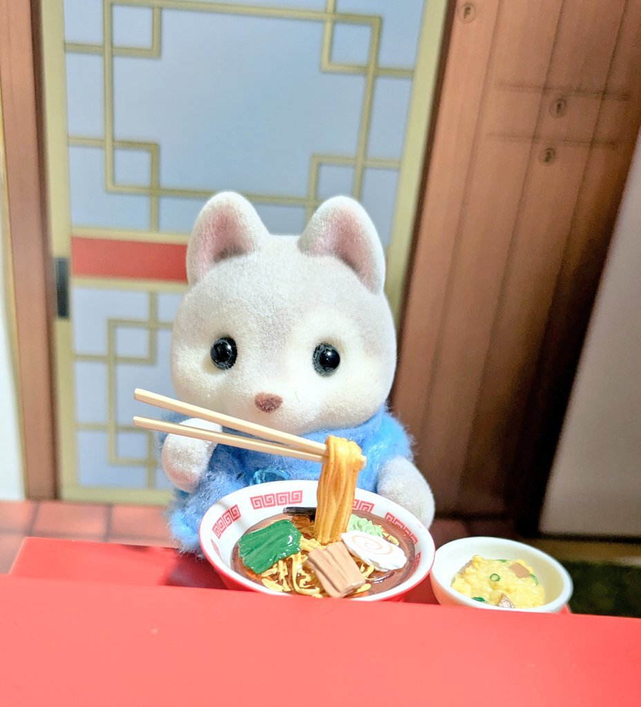 ちょいと飲んでお腹空いた   ハスキーのお父さん 町中華でラーメン堪能してます #シルバニア #シルバニアファミリー #シル活 #ぷちサンプルシリーズやっぱりこの味町中華 pic.x.com/6Ve0nHeJgL