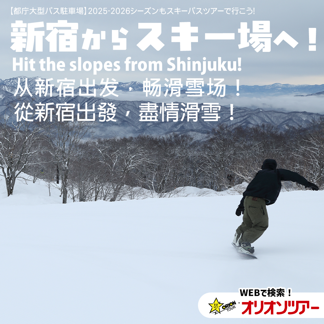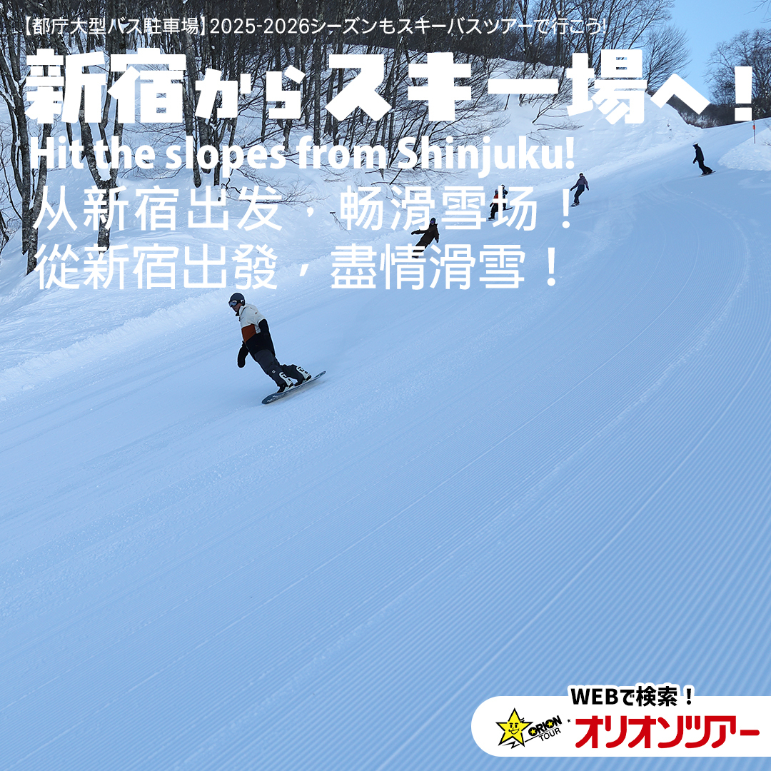 #都庁大型バス駐車場】 2025-2026シーズンもスキーバスツアーで行こう! 新宿発スノーボード&スキーツアーを探してみよう✨ 年末年始の予約受付中です👍 🚍‣orion-ski.jp #旅行会社 #オリオンツアー #スキー旅行 #スノボ旅行 #スキー場 #リフト券 pic.x.com/vjkSt1l2ht