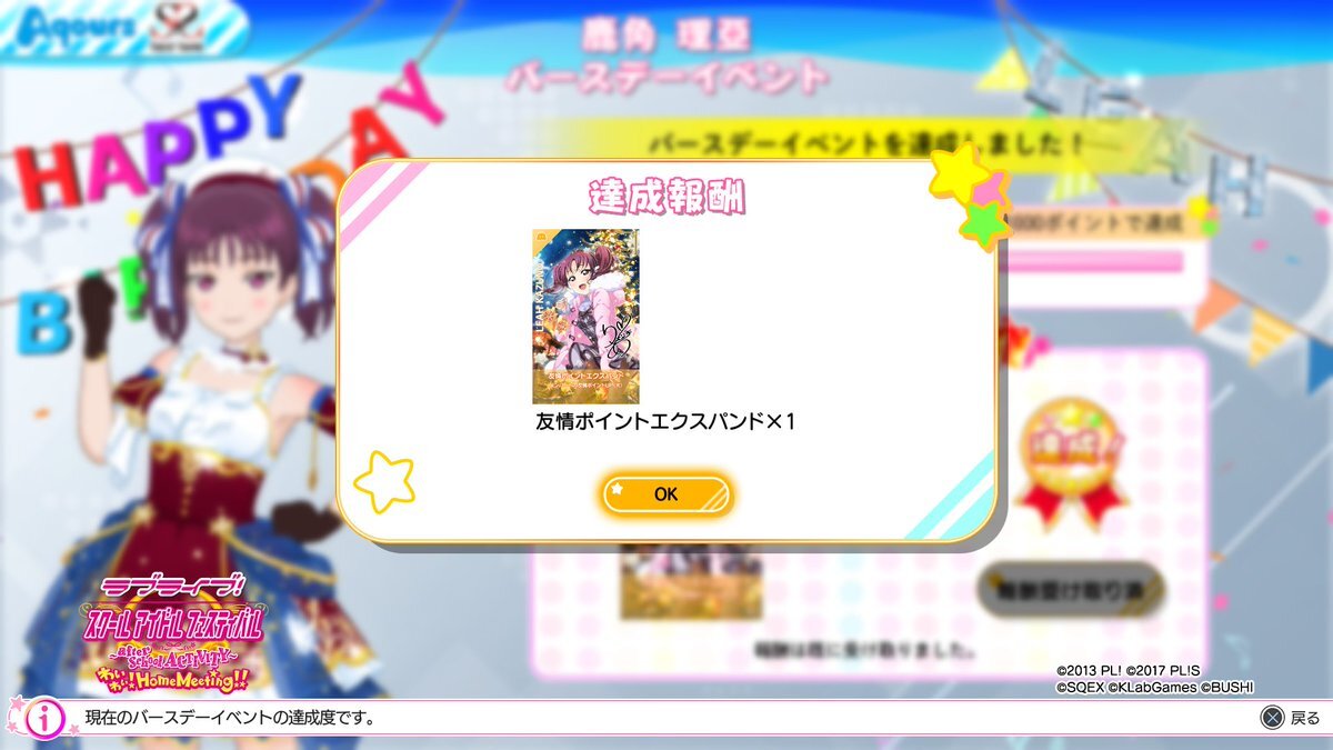 今年は色々な合間を縫って昨日バースデーイベント達成しましたー。 理亞ちゃんお誕生日おめでとうございますー♪ あと今更何をと思われると思いますがHYPER初AP。 #ラブライブ #鹿角理亞生誕祭2025 #スクフェス これも今更ですが対象曲5曲はキツいッス pic.x.com/me8dXXkykX