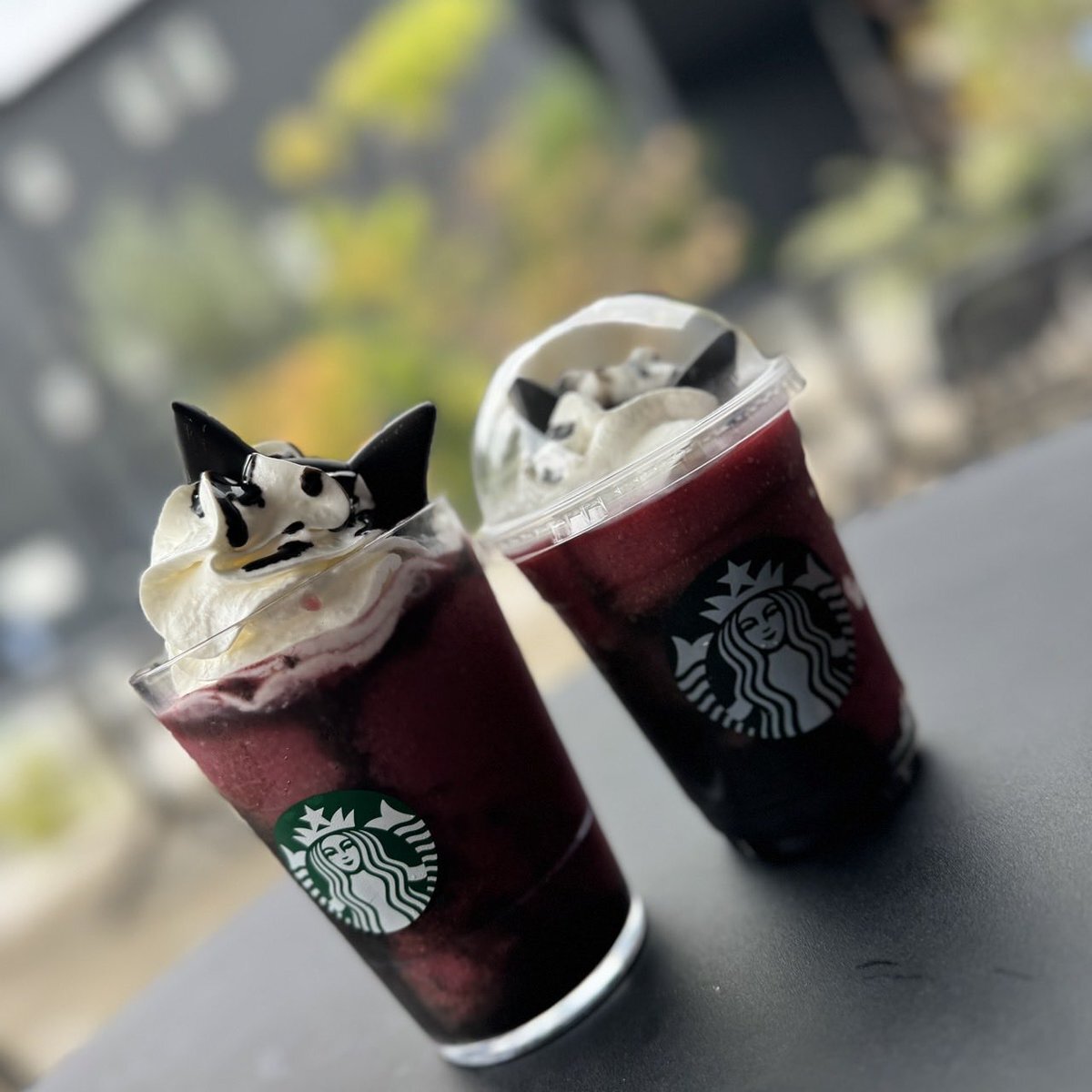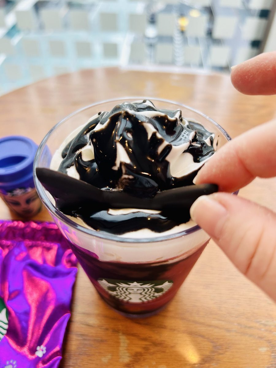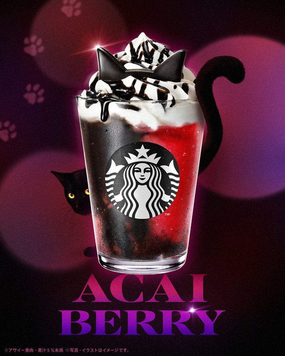 本日(10/10)、『#アサイーベリーフラペチーノ®』(通称 #黒猫フラペチーノ®)がSTART🐈⬛🖤 甘酸っぱいアサイーベリーと、ザクっと食感のブラッククランチが楽しめる一杯です。 仕上げには、猫耳チョコレートが🍫✨ 黒猫と一緒に、遊び心あふれるひとときを楽しみませんか?🐾 sbux.jp/46LxVFb