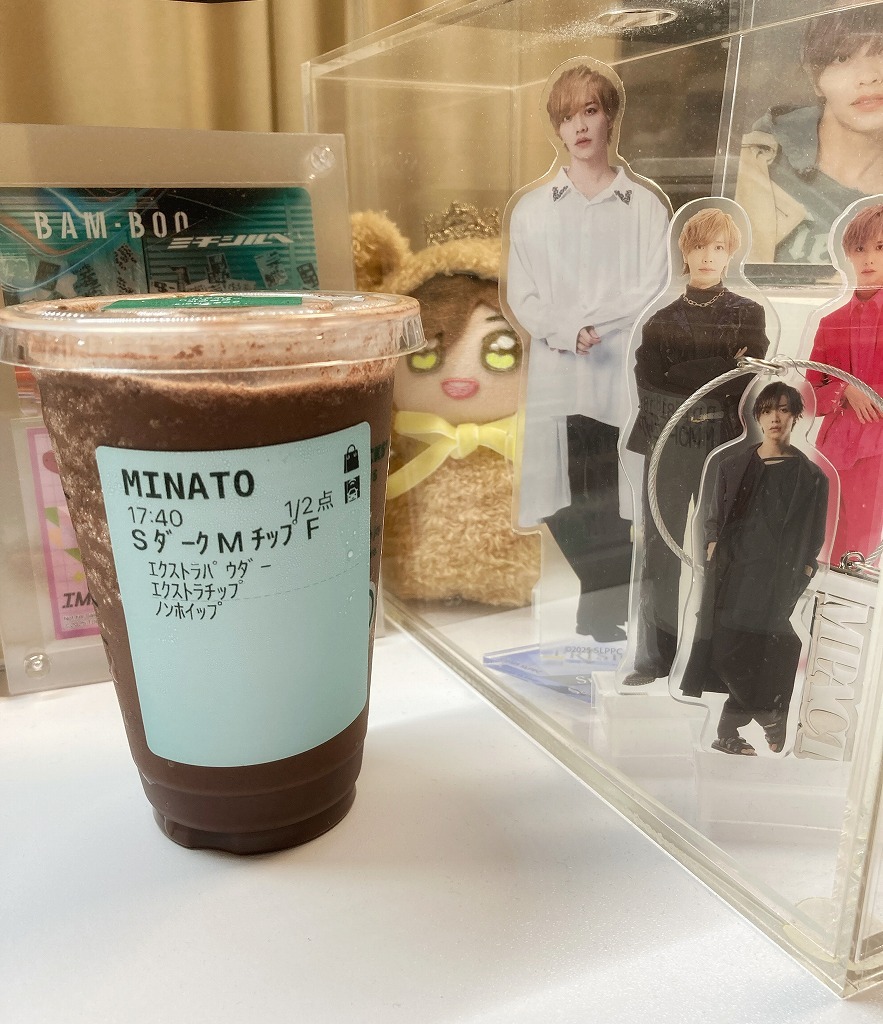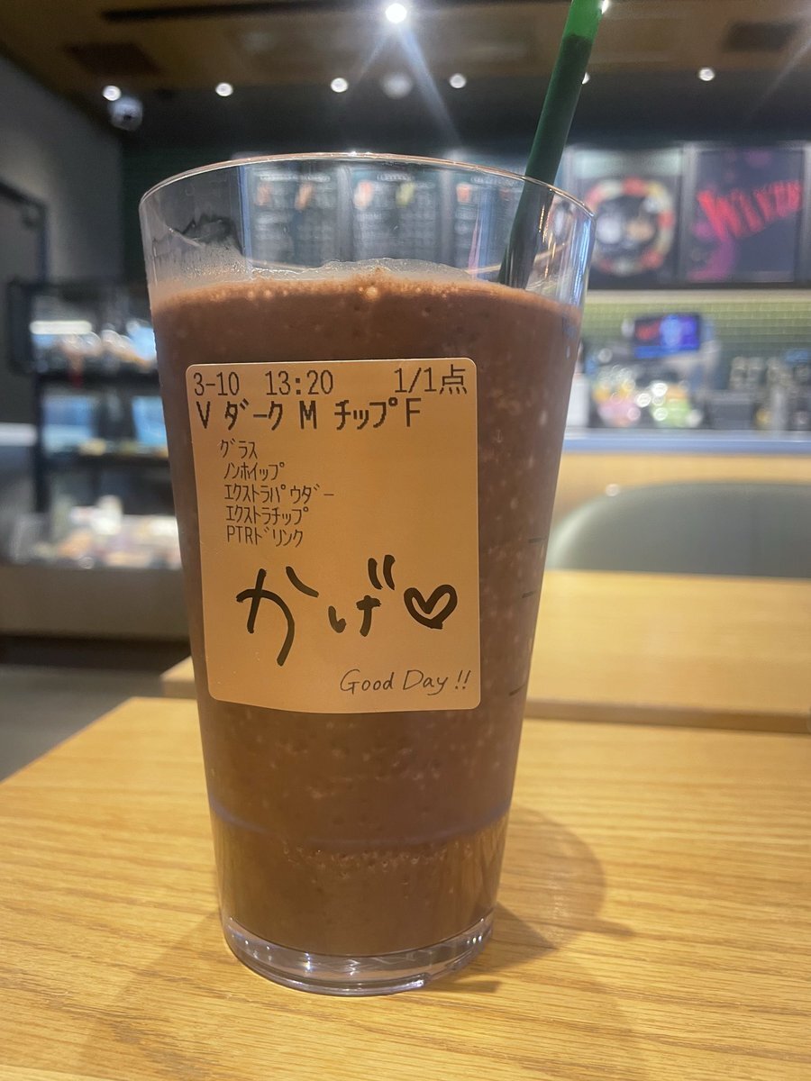 影カスタムのダークモカチップフラペチーノをよこぴサイズで、かげよこフラペチーノ❤️💜 昨日の病院帰りのご褒美でした このカスタマイズいいなぁ、苦みと甘みが両方増しててうまし😋 #スターバックス #影山拓也 #横原悠毅 pic.x.com/F7I0dpdcEC