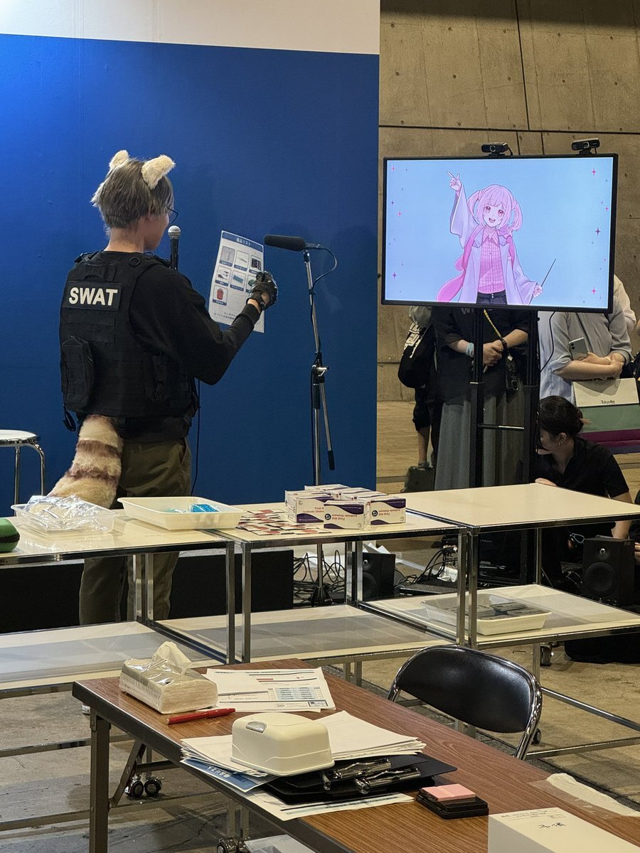 最後の参加者が1人だったので、一緒に罰金計算をするよわき 座るときに尻尾を椅子の隙間に入れるよわきくん可愛かった #ストグラフェス観光中 pic.x.com/pxcaA4Tdne
