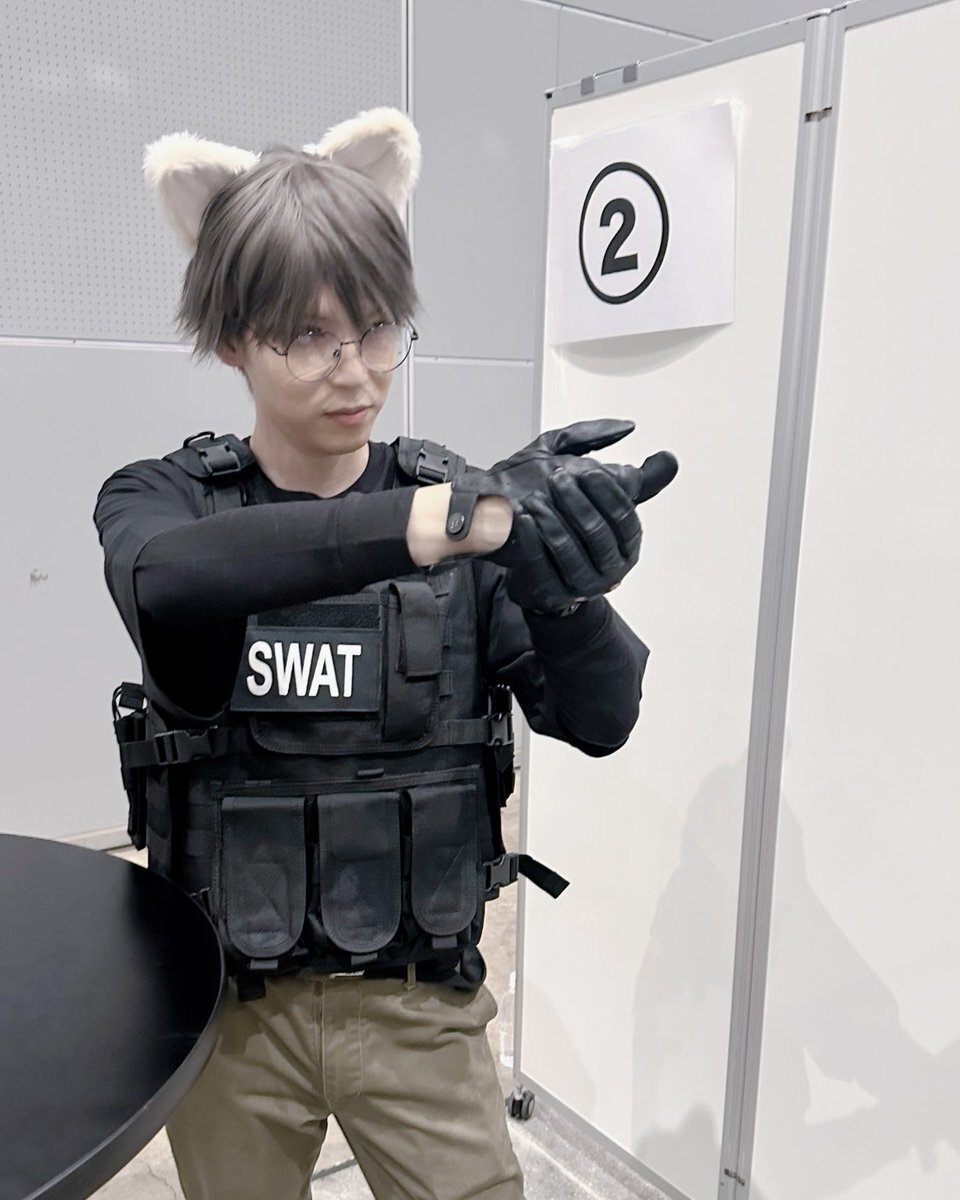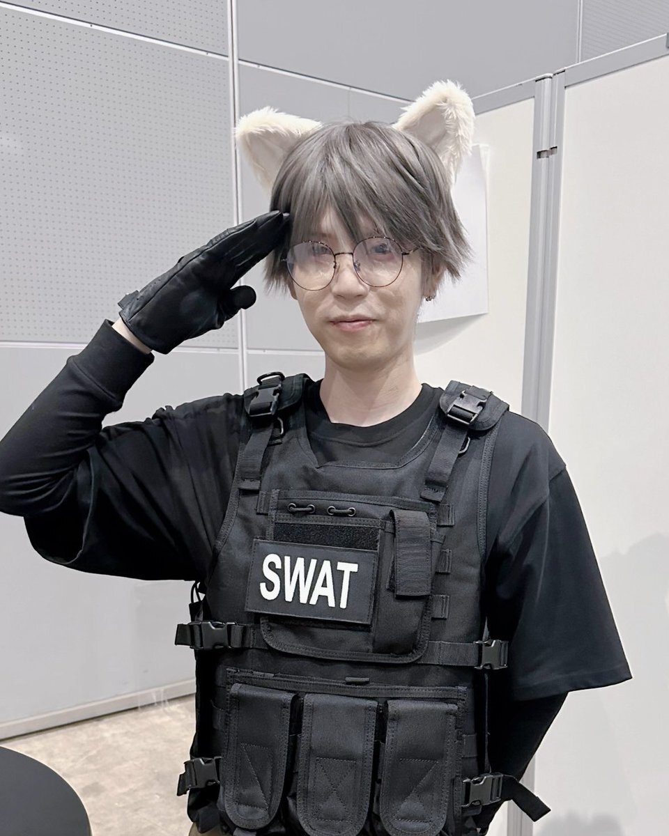 ミーグリ 夜若木颯 敬礼するよわきくん ハンドガンを構えるよわきくん 尻尾をアピールするよわきくん たぬ耳たぬしっぽ可愛かったですありがとうございました🙏 #ストグラフェス観光中 pic.x.com/fZRSLhL5cR