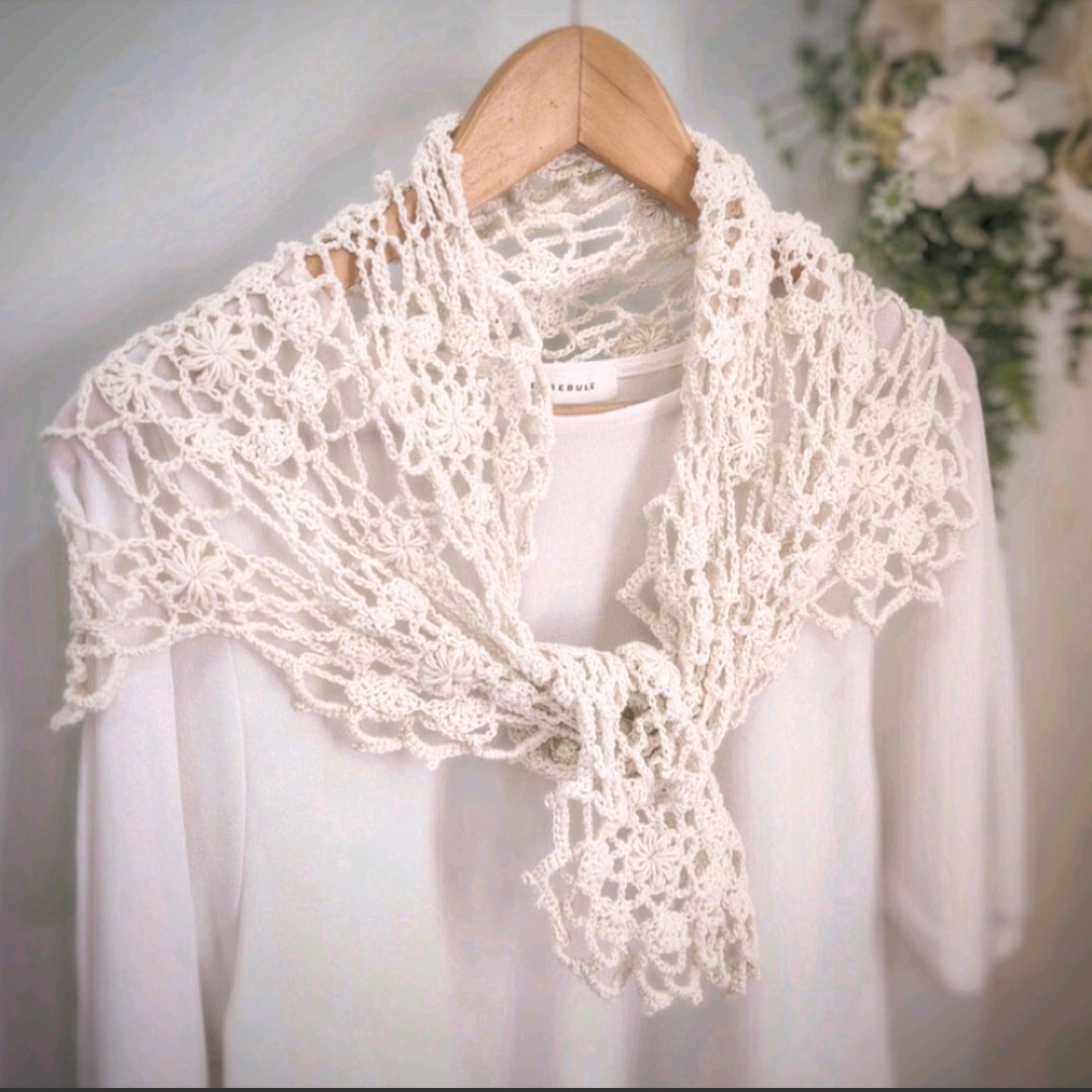 コートに合わせると柄が引き立つ、台形の三角ストール。 つけ襟感覚で軽やかにまとえる一枚です✨ 全7色、素材はコットンと竹糸から選べます。 #ハンドメイド #ストール #三角ストール #つけ襟コーデ #編み物作品 #手仕事のある暮らし #creemaで販売中 pic.x.com/mGTOrMXbje