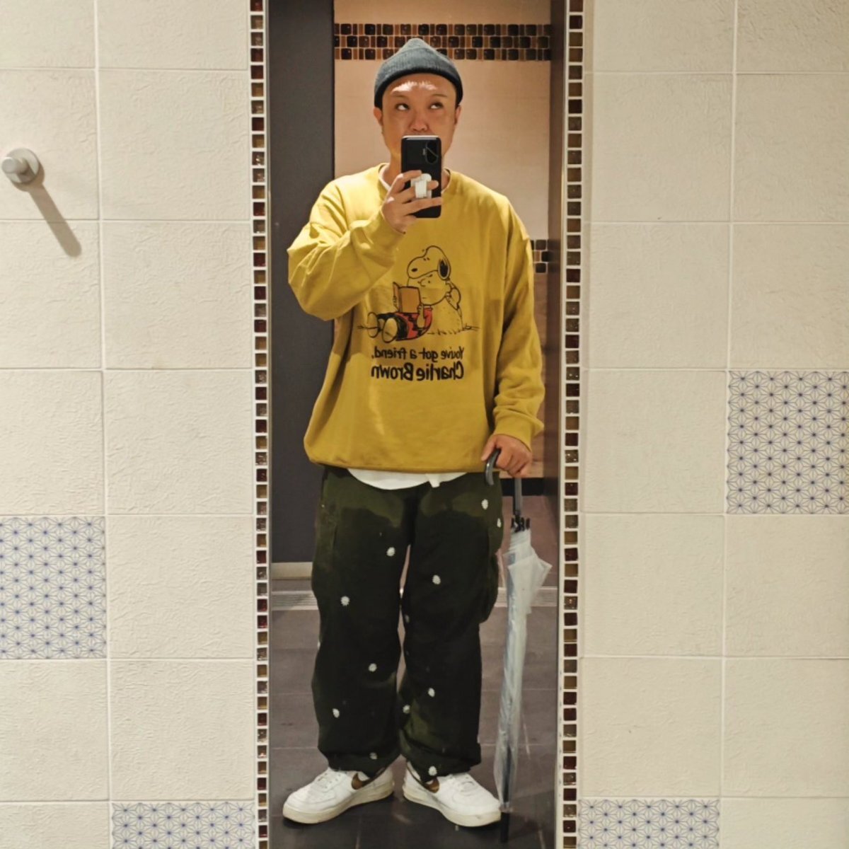 今日のクツ野郎 おはようございます🙋 〜ずぶ濡れ辛子蓮根ヲジさん💦編〜 cap : GU tops : UNIQLO × peanuts inner : LAKOLE pants : HINSON shoes : AIR FORCE 1 LO " IVORY SNAKE " #スヌーピー #hinson #古着 #古着好きな人と繋がりたい #スニーカー好きな人と繋がりたい pic.x.com/FZ60TK6rEe