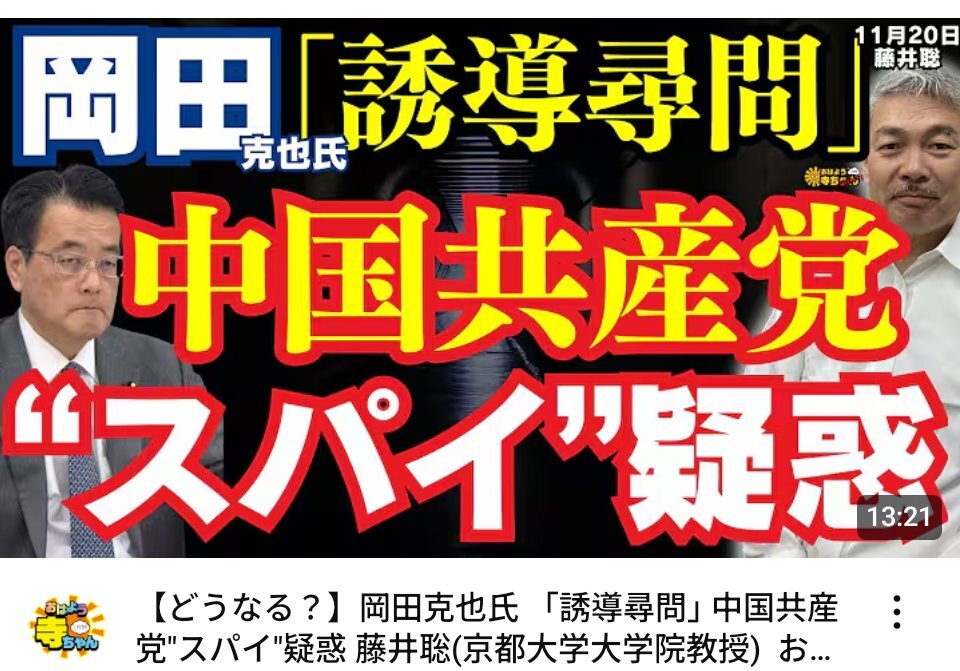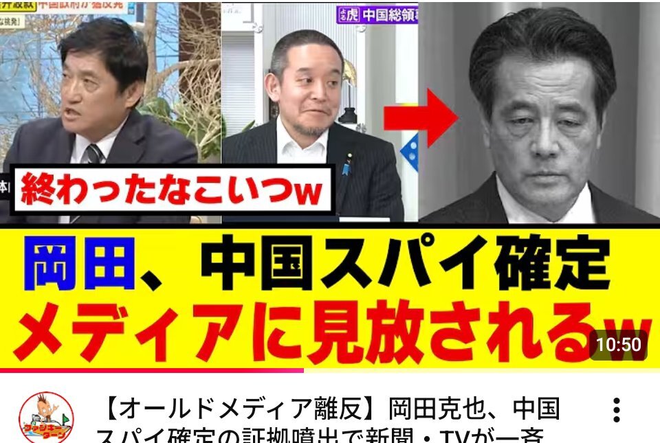 立憲 岡田克也 「中国のスパイ説」 がSNSで浮上 ! NHK党の 浜田聡 が爆弾発言 ! 門田隆将 もその正体を暴露 youtu.be/14fGrEViUxk?si… @YouTubeより #中国 #スパイ