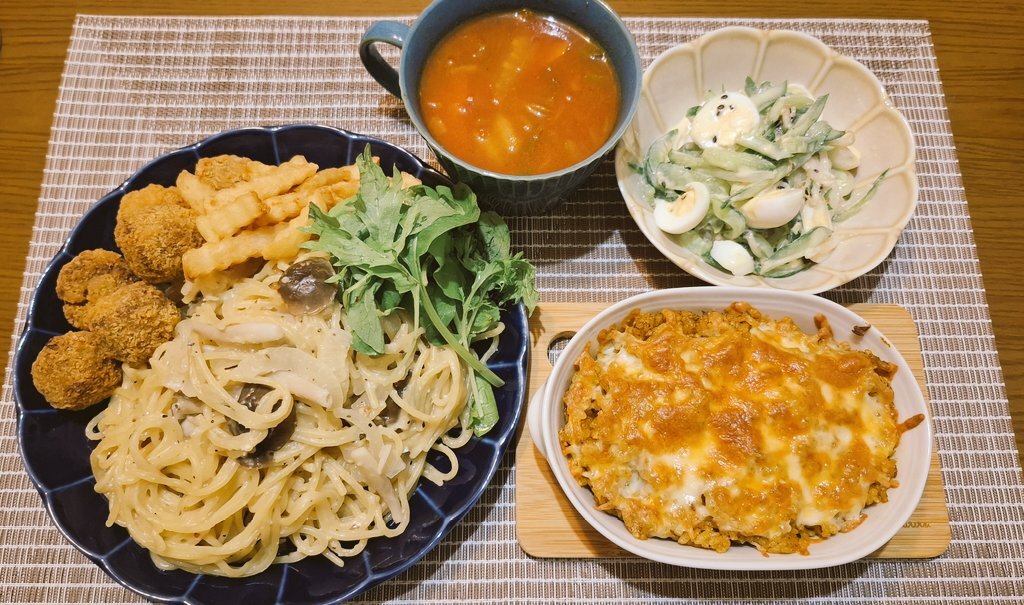 ・スパゲティ ビーフコロッケポテト添え ・ビリヤニ風スパイスご飯チーズ焼き ・きゅうりもやしうずらの卵サラダ ・白菜人参コンソメトマトスープ #夕飯 #おうちごはん #スパゲティ 歴代首相湯呑み届いた(^-^)V これは買っとかなあかんやつと思う。 pic.x.com/jnycqfUH0p