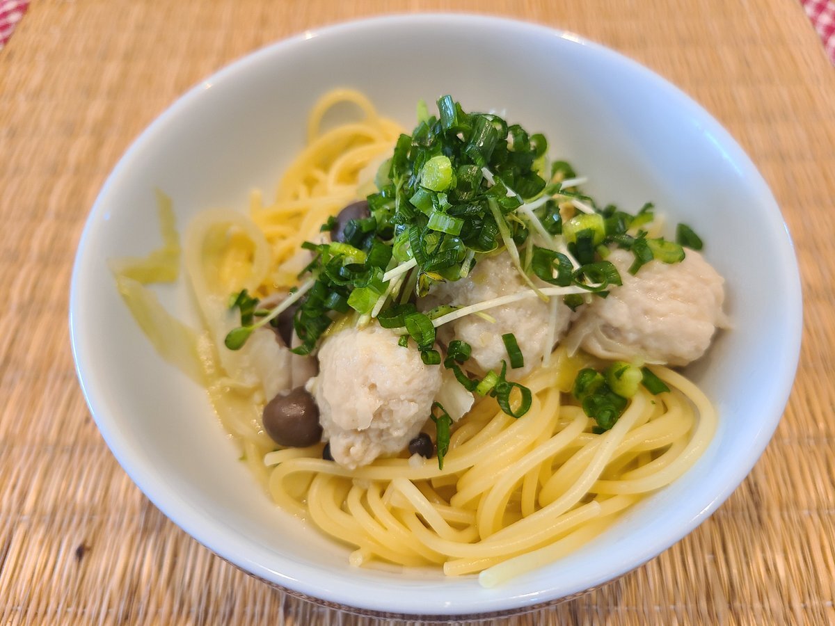 🍝25年 家パスタ 213皿 #キャベツと鶏の肉団子スープスパゲティ 最後のスープでもう一度.味が染み美味しい.ボールにアップグレード!😋(250916) ●🇹🇷PROSSIMO スパゲッティ 1.6mm ●🥣キャベツと鶏の肉団子スープ ●🥬かいわれ大根・ねぎ ●🍄しめじ #パスタ #家パスタ #スパゲティ #スープスパゲティ pic.x.com/WdreVMSv8C