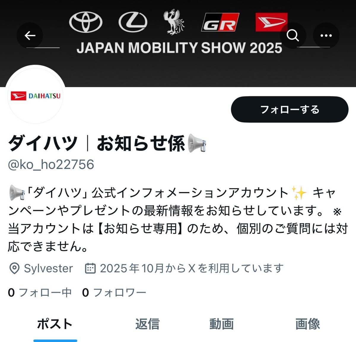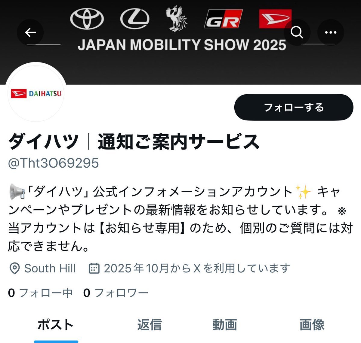 この二つのダイハツ系アカウントって、新手のスパムだよね😱 ダイハツ公式さん、対応した方がいいですよ @HelloDaihatsu @gifu_daihatsu #ダイハツ #daihatsu #スパム pic.x.com/SUyqnk81r9
