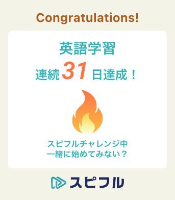 #Versantチャレンジ 『スピフル』アプリで連続31日目の学習をしました! #スピフル #口頭英作文 #瞬間英作文 #独り言英会話 #スピーキング #英語学習 #1日1スピ pic.x.com/VwtGEqymb8