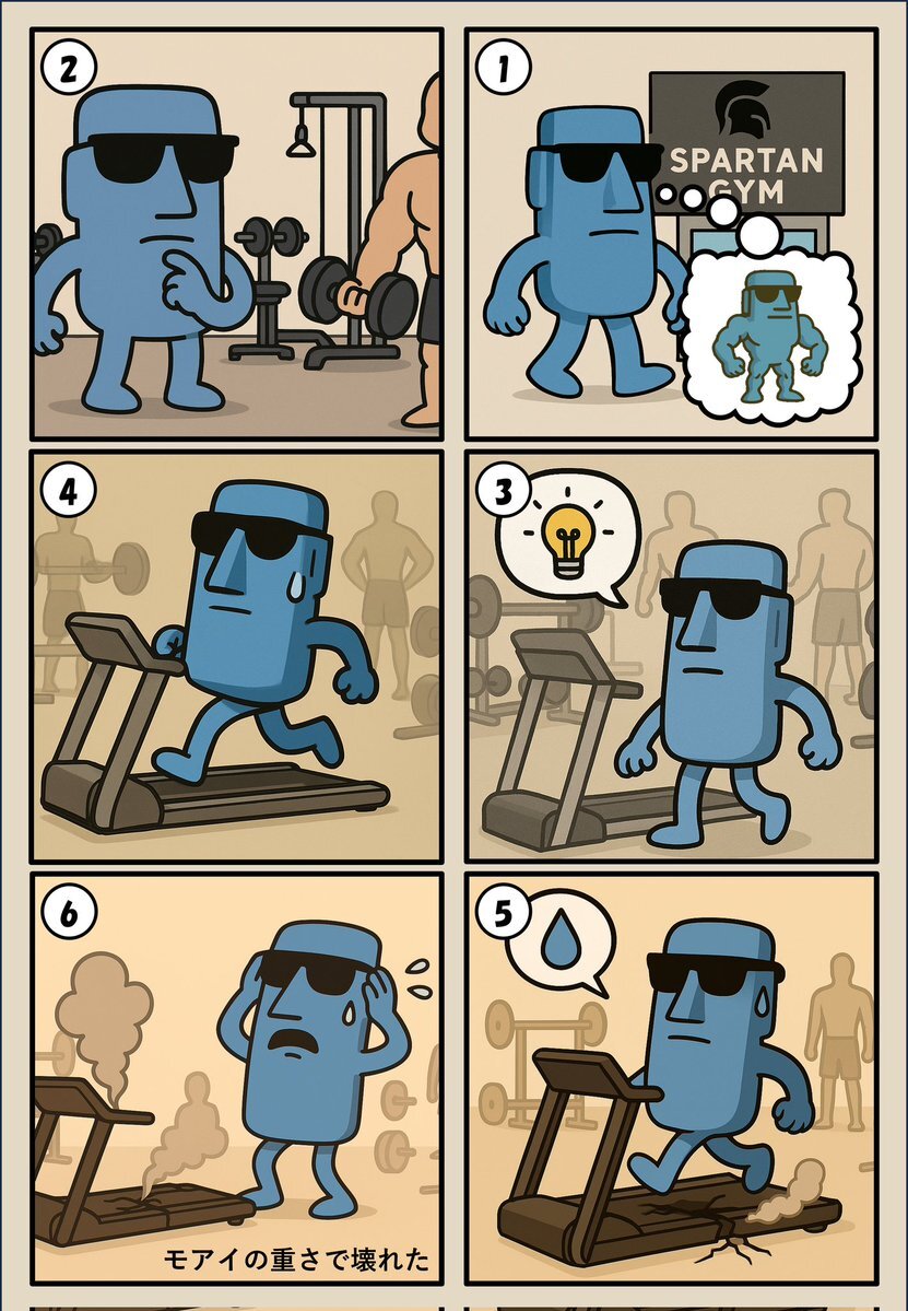 🗿📆 #6 『スパルタンジム』 マッチョに憧れるモアイはジムに行ってみるが… #🗿📆 #モアイ #モアイ漫画 #日常漫画 #モアイ好きと繋がりたい #スポーツジム #スパルタ #マッチョ #筋トレ pic.x.com/eh0texCIGW