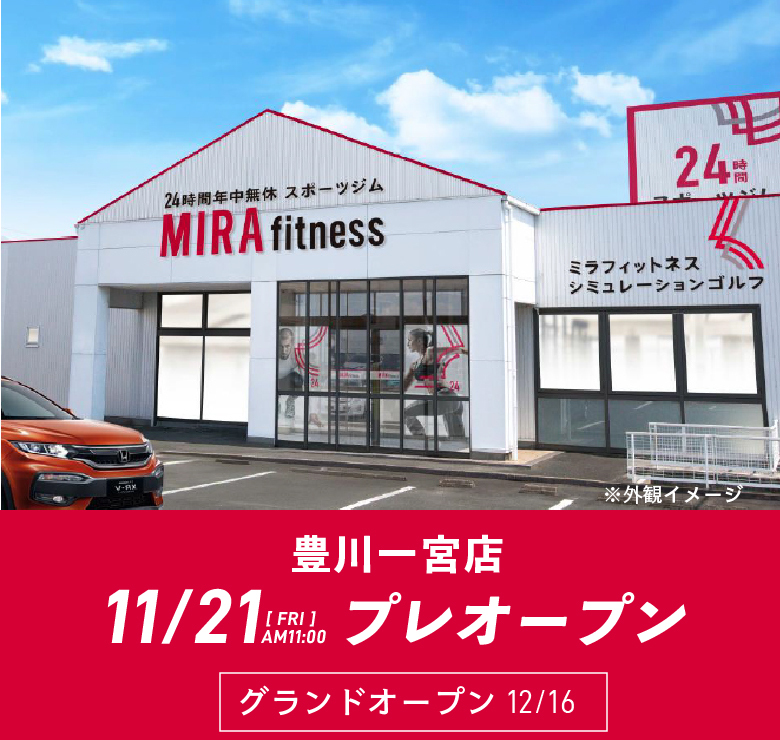 // 🗣️ ミラフィットネス豊川一宮店🆕オープン❣ \\ ━━━━*\お得な早期入会実施中/*━━━━ 『先行WEB入会』 📅期間:10/8~11/20 ⭐先着100名様限定:月会費永久割あり ➡️shop.mirafitness.jp/detail/toyokaw… ━━━━━━━━━━━━━━━━━━━━━ #ミラフィットネス #スポーツジム