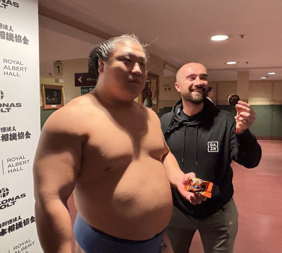 DAZNおじさんからイギリスのお菓子をもらって食べる #伯桜鵬 。 デリシャス😋 #sumo #相撲 #大相撲 #ロンドン公演 #London #RoyalAlbertHal #スポーツ報知 pic.x.com/EiFUS80SJn