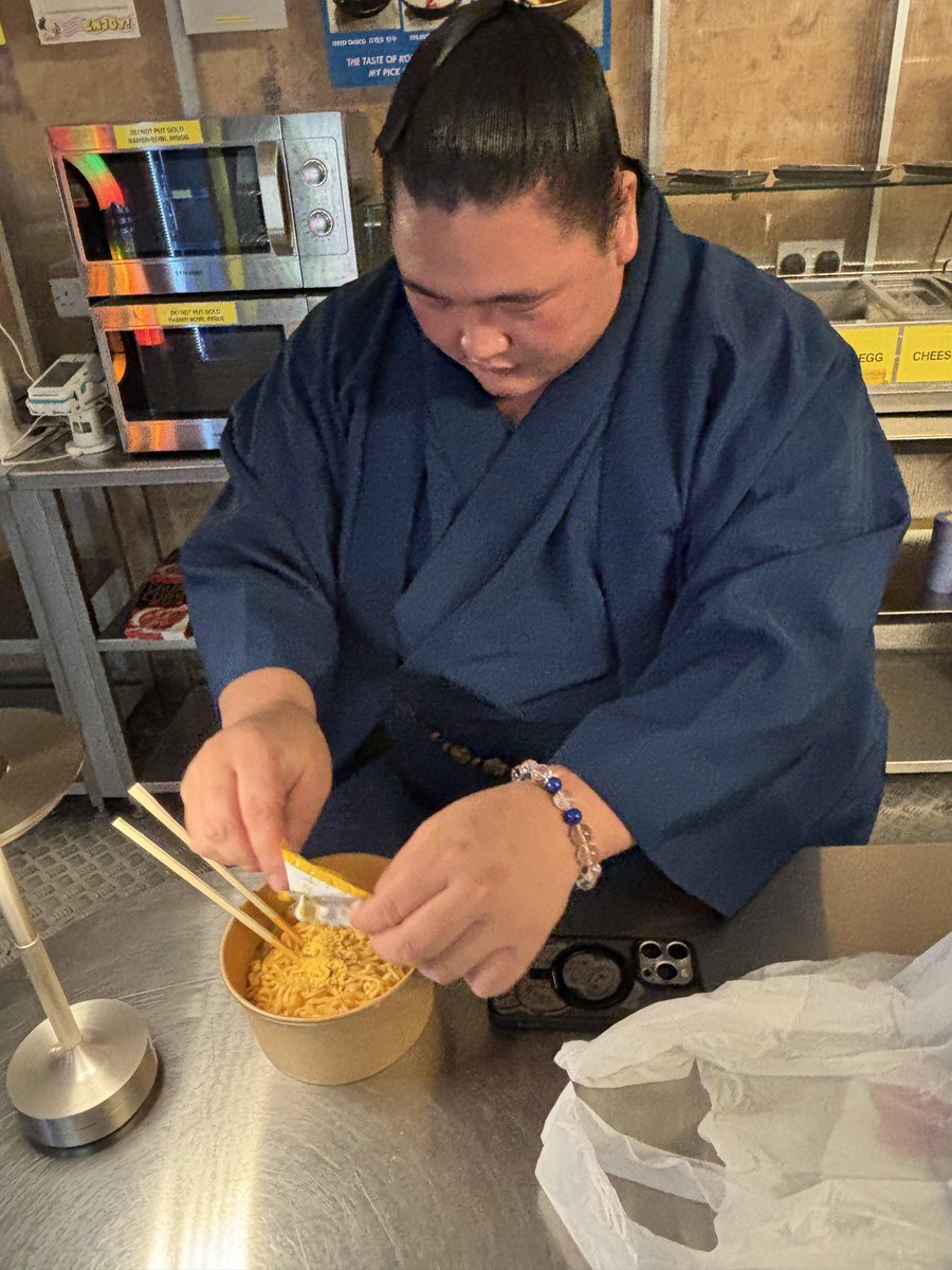 ロンドン公演千秋楽の帰り道、インスタントラーメン屋で #欧勝海 関に偶然会いました🍜 #sumo #相撲 #大相撲 #ロンドン公演 #London #RoyalAlbertHal #スポーツ報知 pic.x.com/F9TwpdD1SO