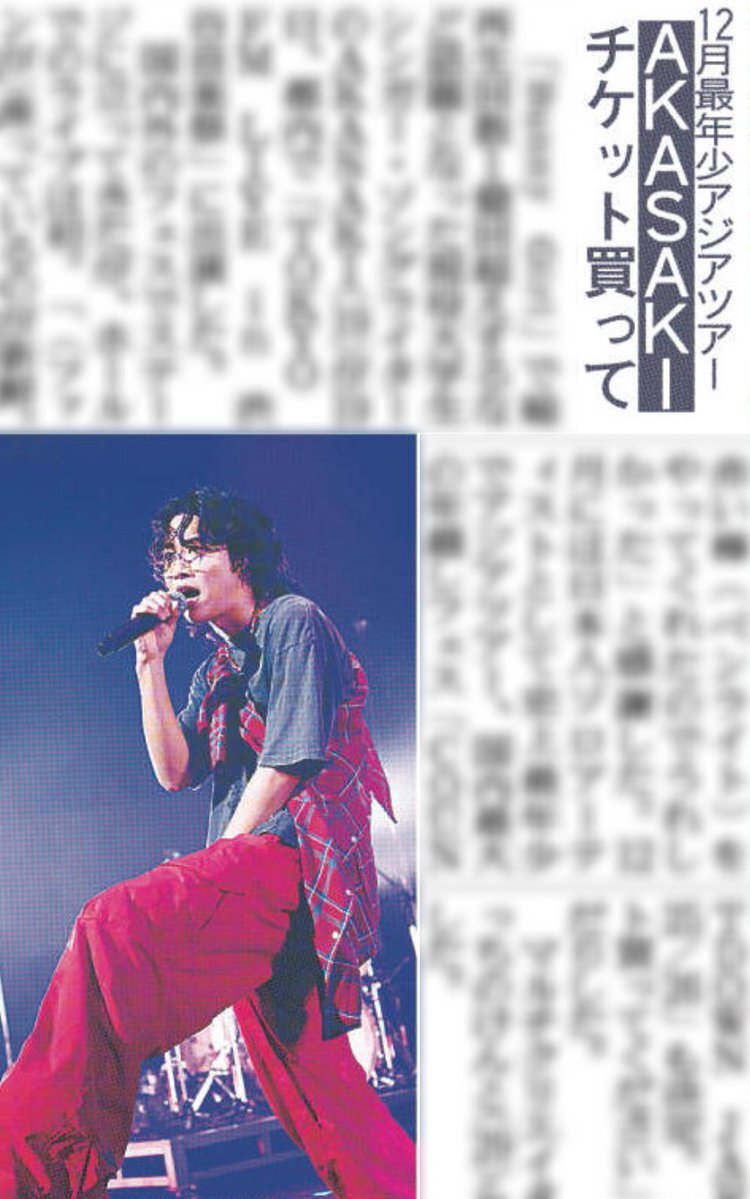 【10/20付 #スポーツ報知 】 🟥初ホールライブに登場🟥 現役大学生シンガー _ _ _ _ _ _ _ _ #AKASAKI さん 12月には… 日本人ソロアーティスト 史上最年少アジアツアーへ ファンへおねだり‼️ 『チケット買ってください』 #bunnygirl pic.x.com/HbBzSHIfE7