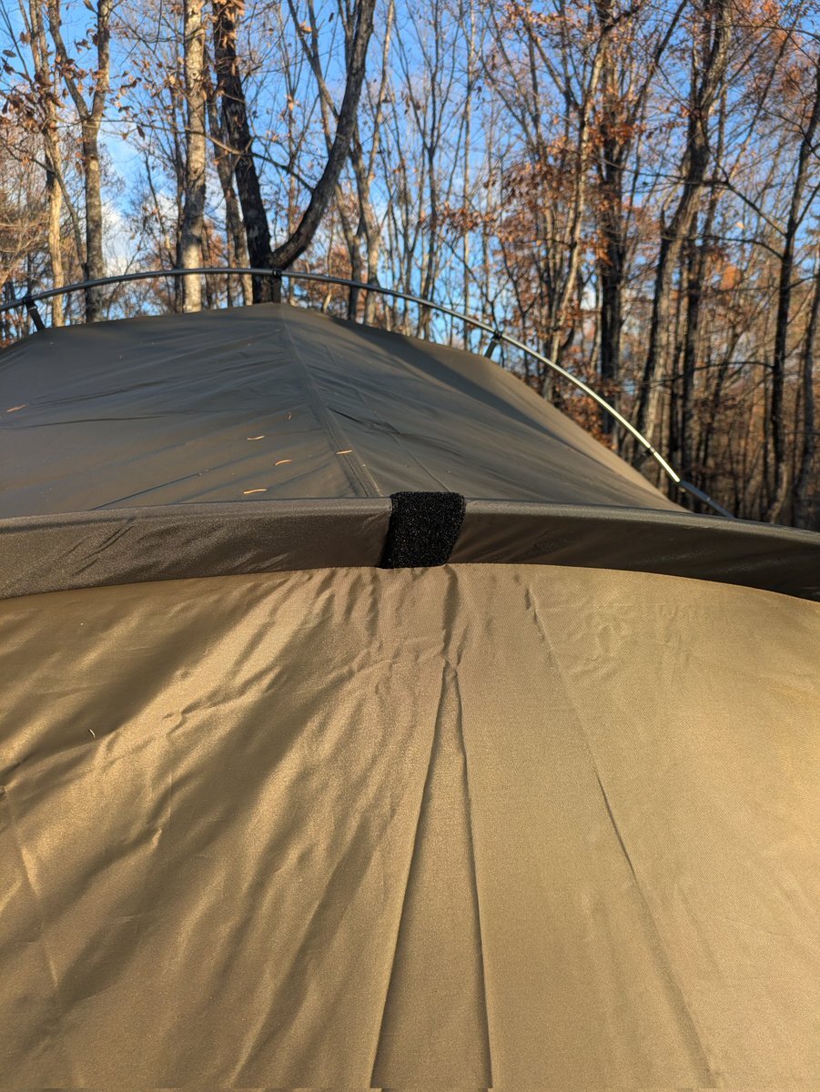 ここにベルクロがあるのは、どう考えてもルーフシートが付くと思うのだが🤔 遮光性が上がって、結露も減ればもっと使えるテントになるんだけどなぁ💦 発売されないということは、あまり売れてないのかな?? #クク2 #ゼインアーツ pic.x.com/vCfV0ZVgYV