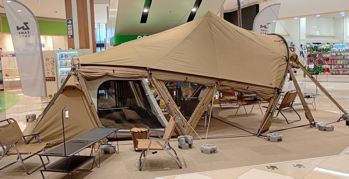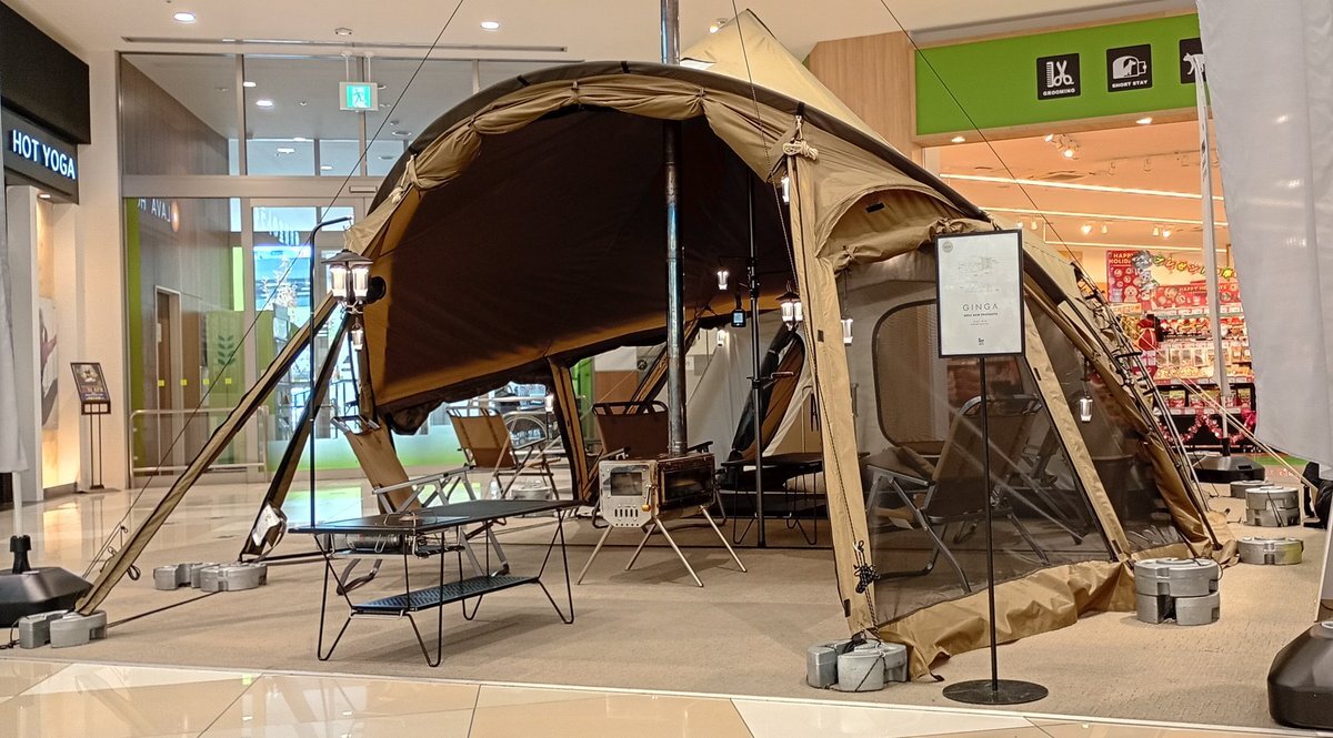 イオンモール長久手の広場に新テント・ギンガが展示されるとの事で早速見てきました。ソロキャンの自分には縁がないかもですが…… デケぇ。とにかくデカイ。中も広い。 テント内にいた小杉代表に色々伺う。インストールされてる薪ストは台湾ブランドのWork Tuff Stoveとのこと。 #ゼインアーツ pic.x.com/RB5oUZtraE