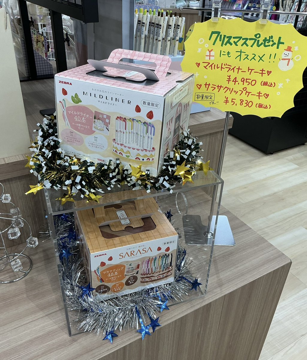 ✏️文具売場よりお知らせ🗒️ #ゼブラ #サラサクリップ #マイルドライナー より ケーキ型ペン立てセットが入荷🎂✨ ケーキのロウソクに見立てて サラサは48本、マイルドライナーは40本入っております🙌 見てるだけでかわいい…🤤🍽️ 文具好きな方にオススメのセット🌈 pic.x.com/XS6c404GdZ