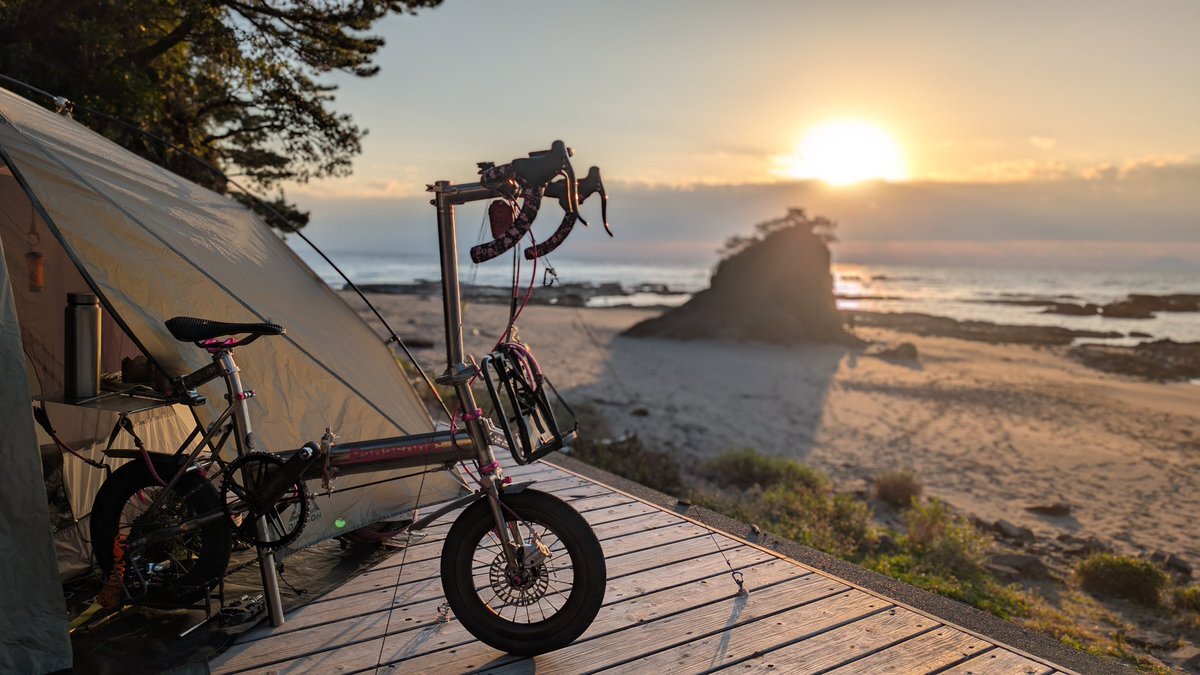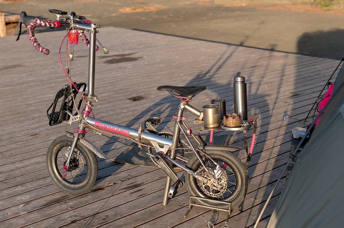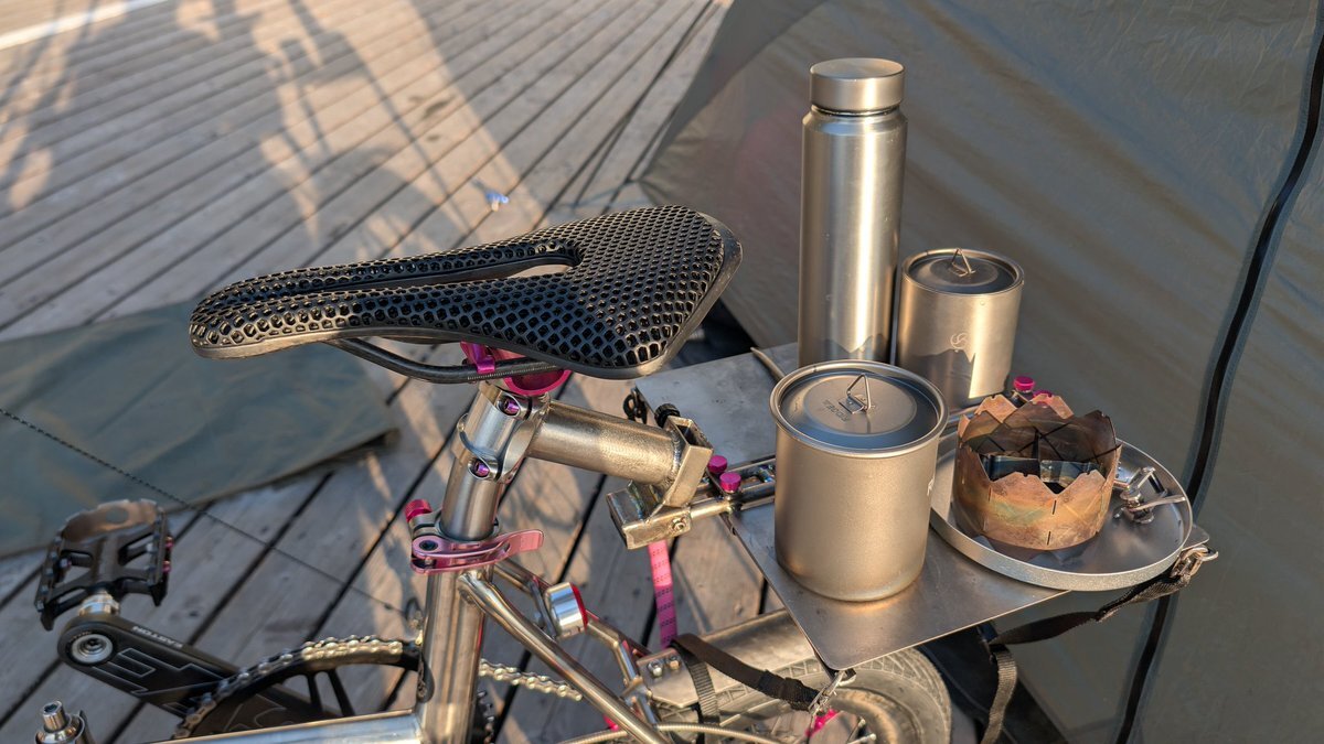 陽射しをいっぱいに浴びるチタン…もとい愛車の輝き…🤤 #自転車キャンプ #ソロキャンプ #トレンクル改造 pic.x.com/jslrOSWayO x.com/sir_altria_jp/…