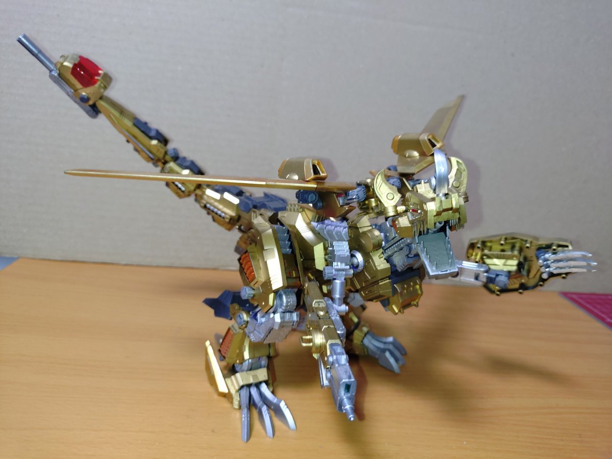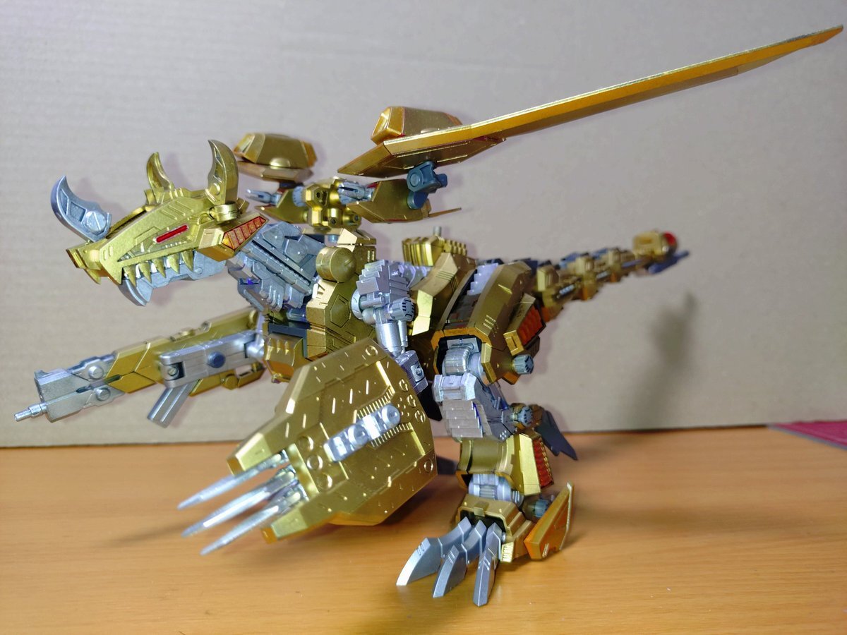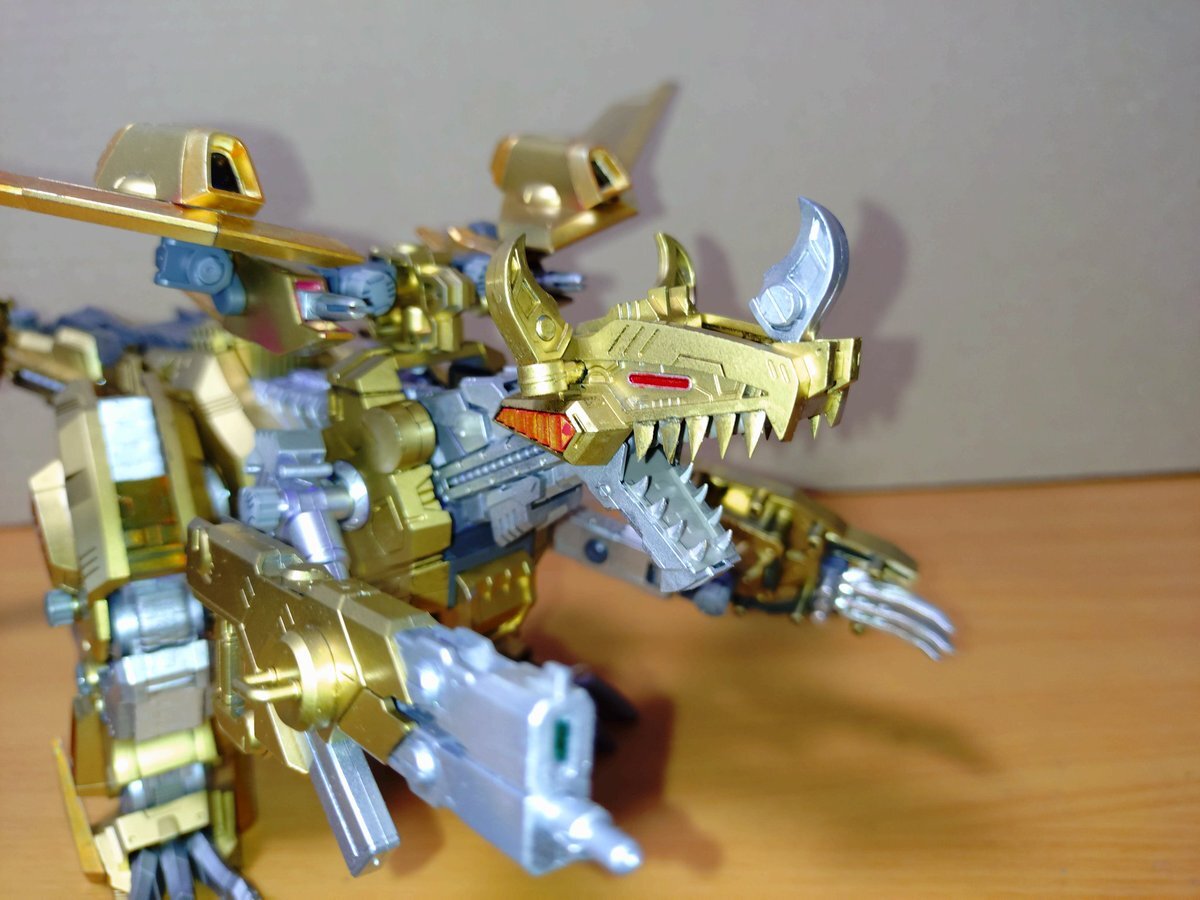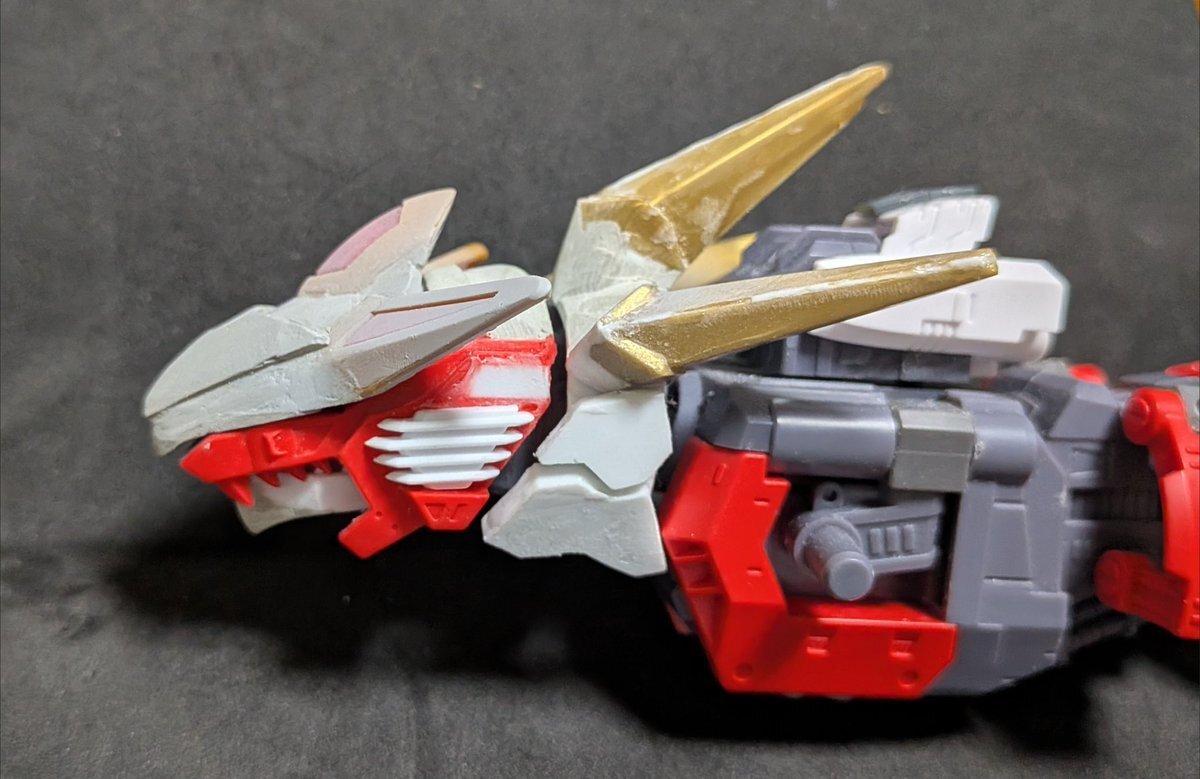 メタルグレイモン、超進化!ジークグレイモン!! ①②という訳で、ジェノザウラーをベースにジークグレイモンを再現してみました!角と頭殻のトゲの再現に苦心しました ③④牙(銀)の外側に別途トゲ(金)を追加 #見てプラスキー #ゾイド #デジモンクロスウォーズ pic.x.com/5QWOi3IXuS