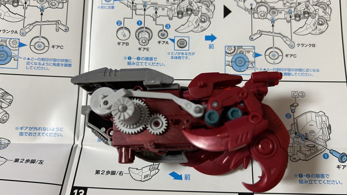 AZゾイドとしてリメイクされた昭和の傑作ゾイドのシーパンツァーを組み立てました! やっぱり、こういうギアの噛み合わせをチェックしながらゾイド組んでる時間に幸せを感じる… ちなみにこの写真、実は組み間違いしてるぞ! 暇な人は組み間違いの場所を探してみよう! #ゾイド pic.x.com/uDCYMq8WL6