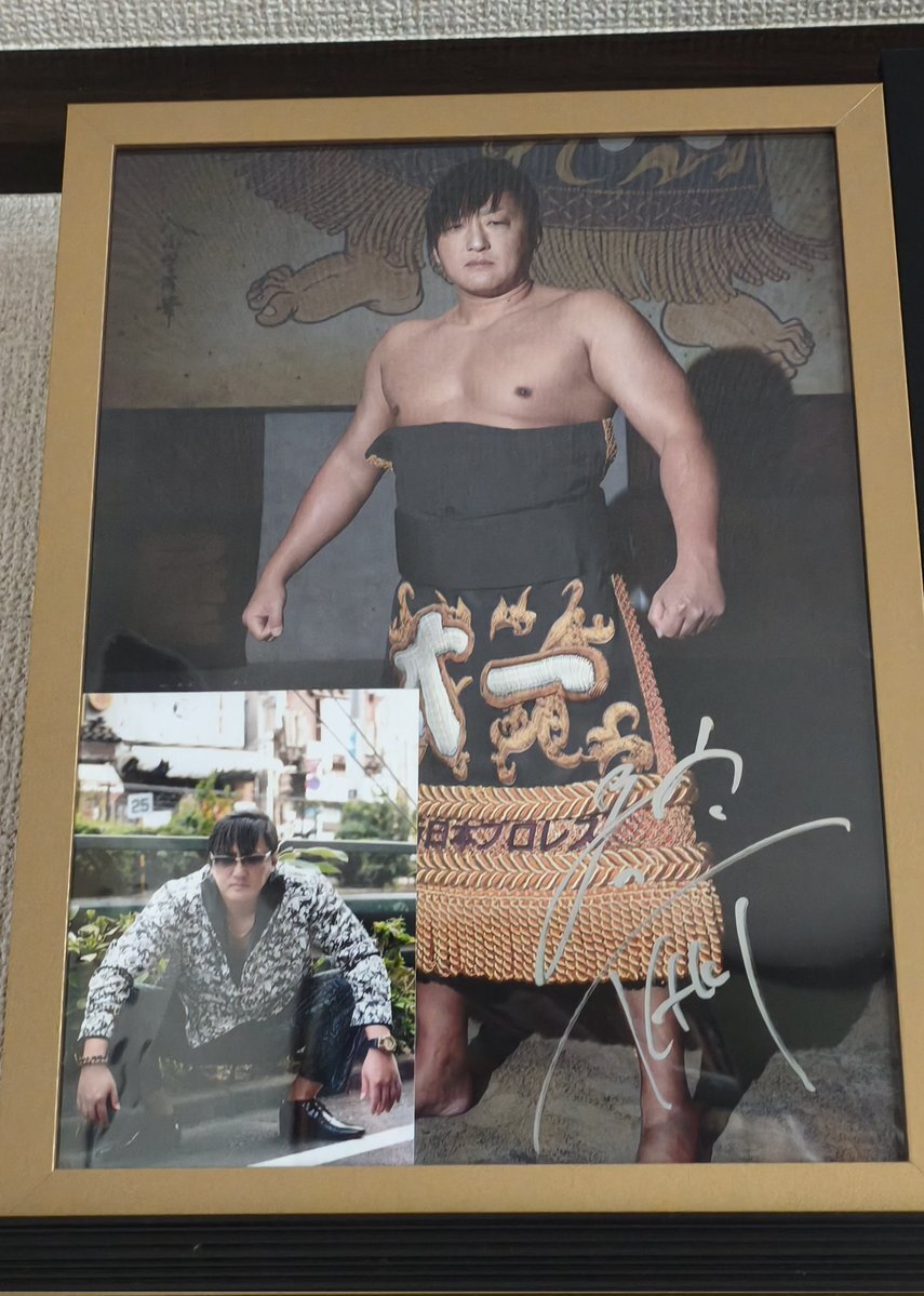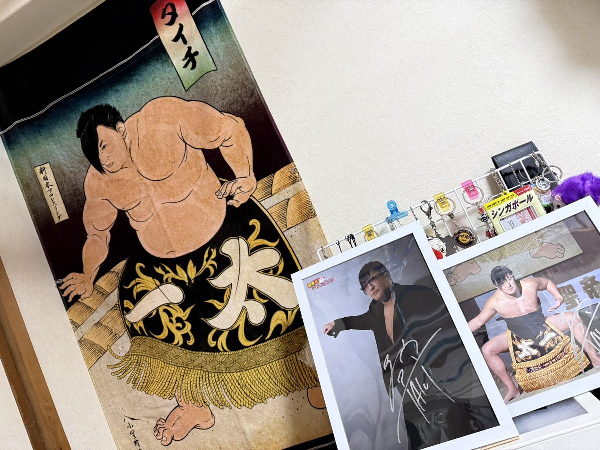 タイチ選手、デビュー23周年おめでとうございます✨ 闘魂ショッピングで、頂いたポートレートと写真飾りました。 国技館に飾られている優勝力士の額のようです😄 (上村選手の横に飾りました) #タイチ #タイチチャンネル pic.x.com/874aW5VfAK