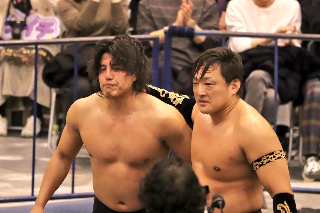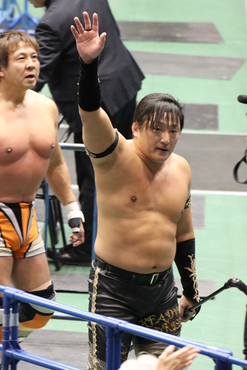 小島聡のラリアットでフォール勝ちし、退場時は小島聡の入場曲がかかる。ぜひとも実現を期待したい。#小島軍 #小島聡 #タイチ x.com/taichi0319/sta…
