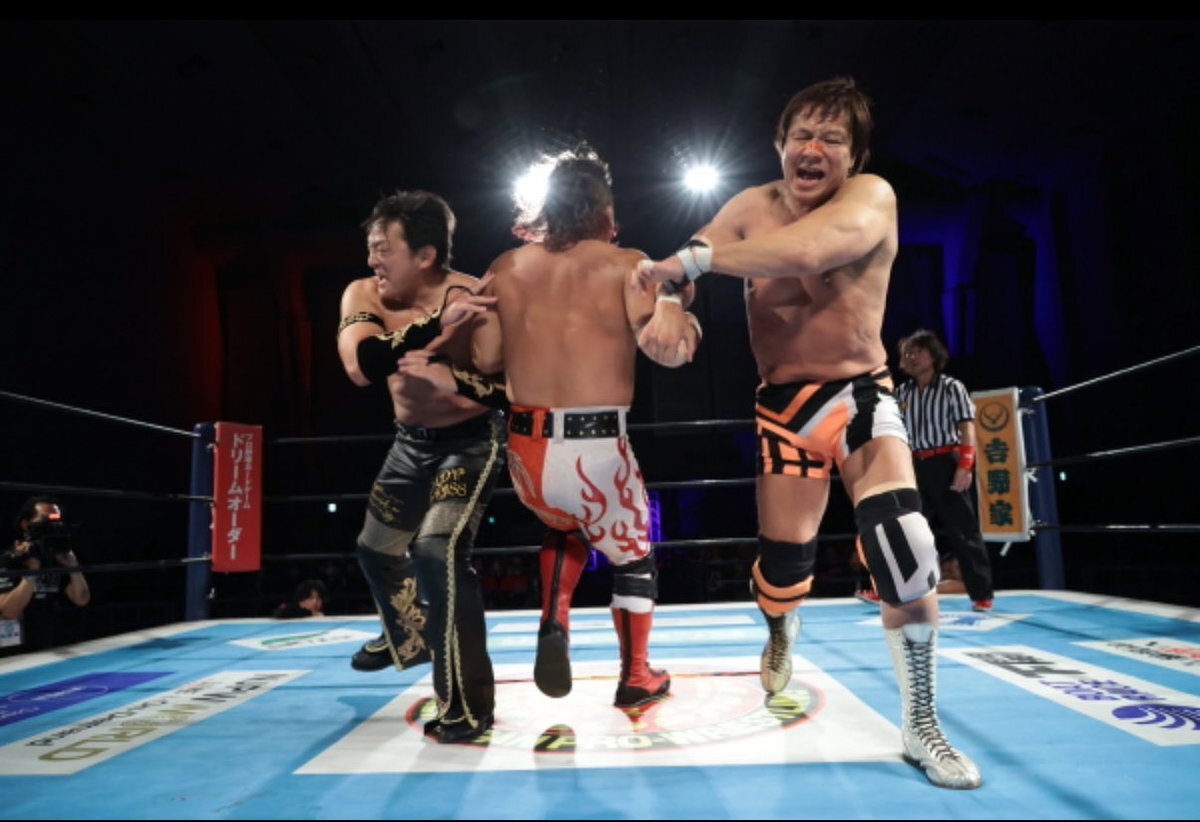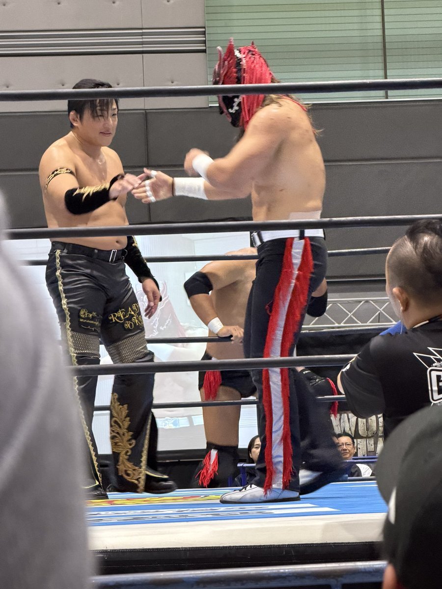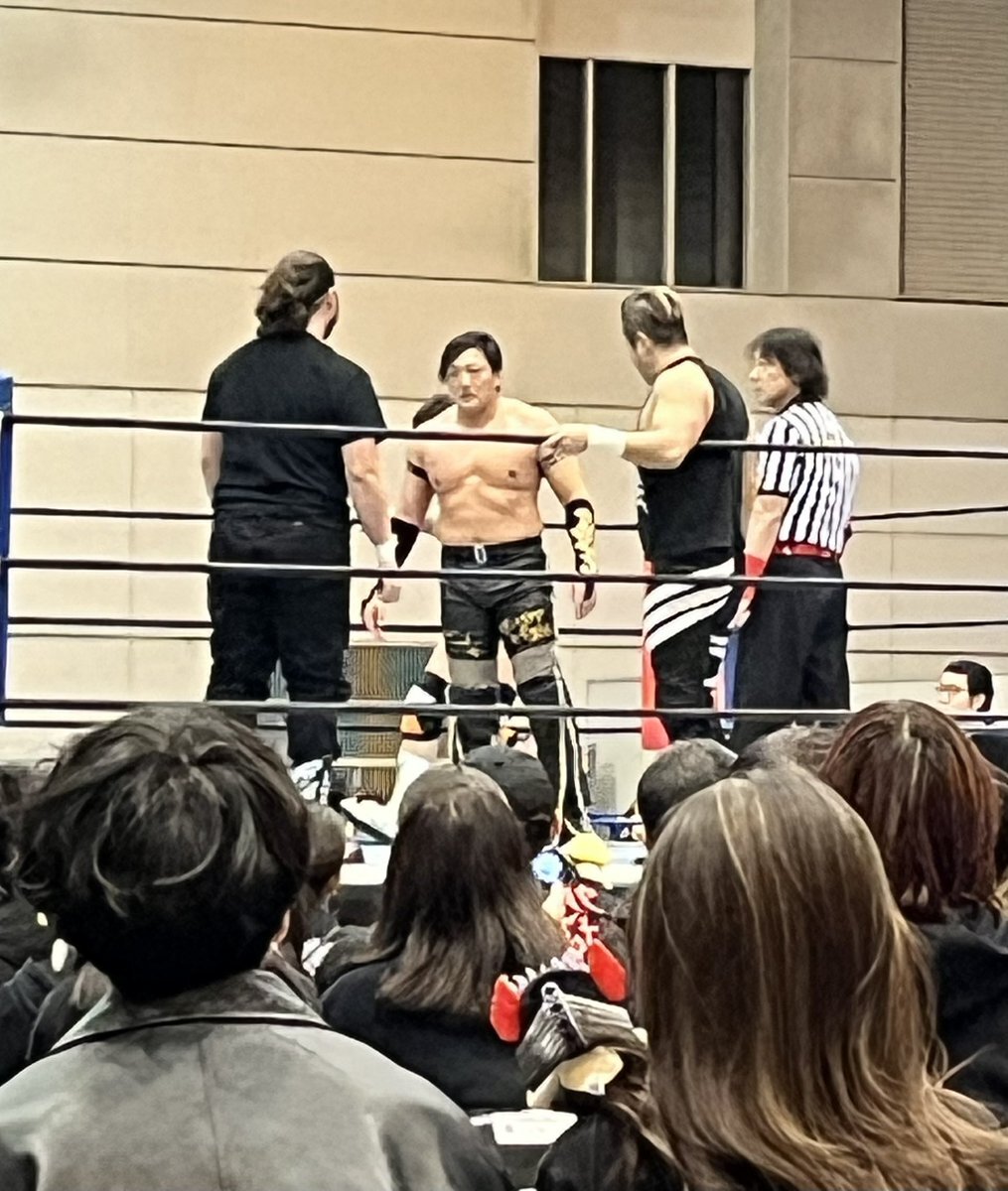 当日の推し(その他の選手) 写真ブレてるのばかりで (´._.`)シュンってなってたけど これ撮れたのまじ最高🥹 (タイチ選手の顔が泣ける😭) #eldesperado #タイチ #njpw #ビックパレットふくしま pic.x.com/vOOhy2adhY