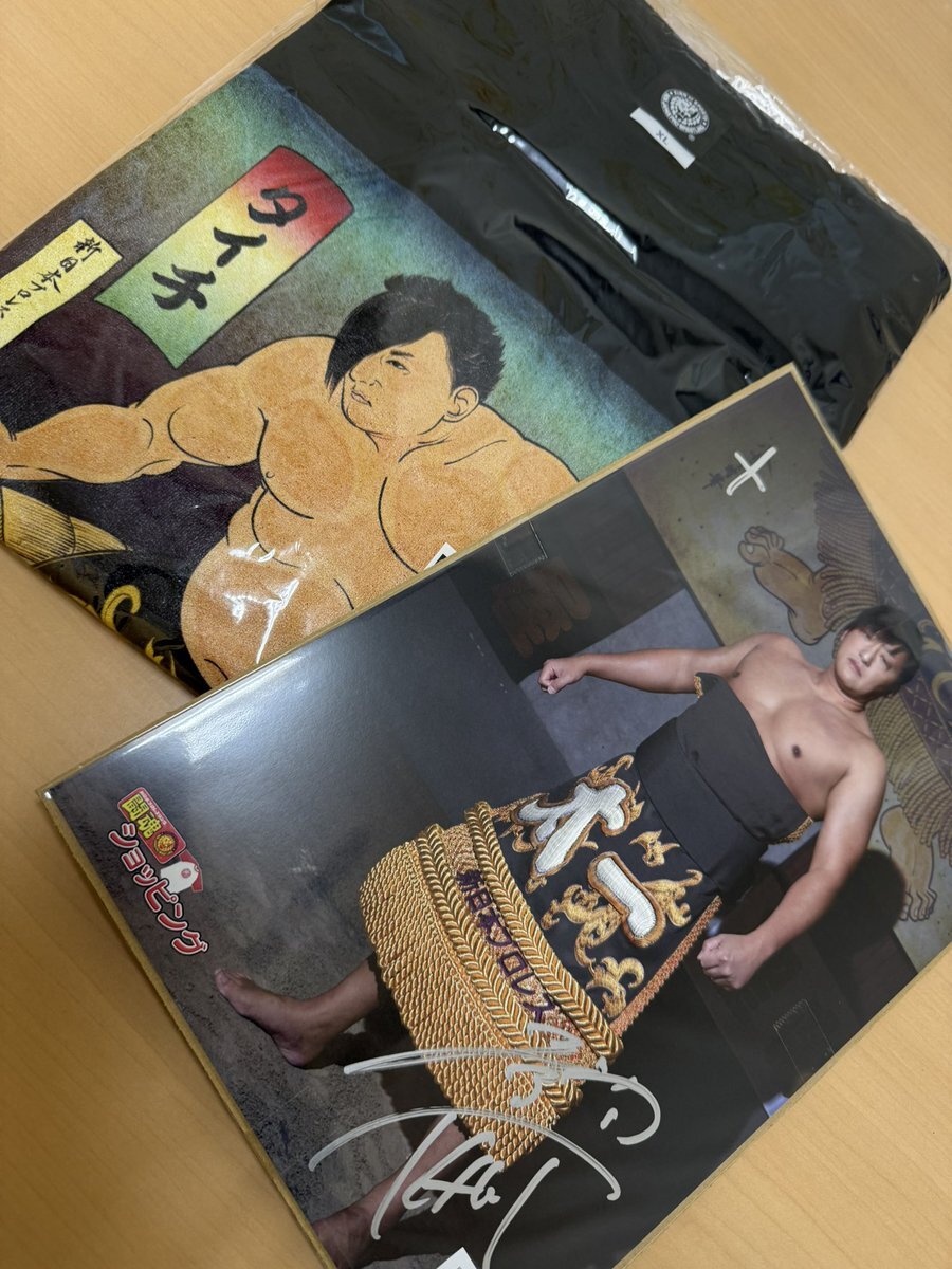タイチ選手のTシャツ、バスタオル 来ました👏👏👏 ちょうど1万円💴 バースデークーポン割引で20%OFF それでも1万円以上購入の特典付いてきた🤩🤩🤩 東方横綱太一 北海道石狩市出身 聖帝部屋 見事な土俵入り(雲竜型) #トーショピ #タイチ #njpw pic.x.com/HkPNxT2xA4
