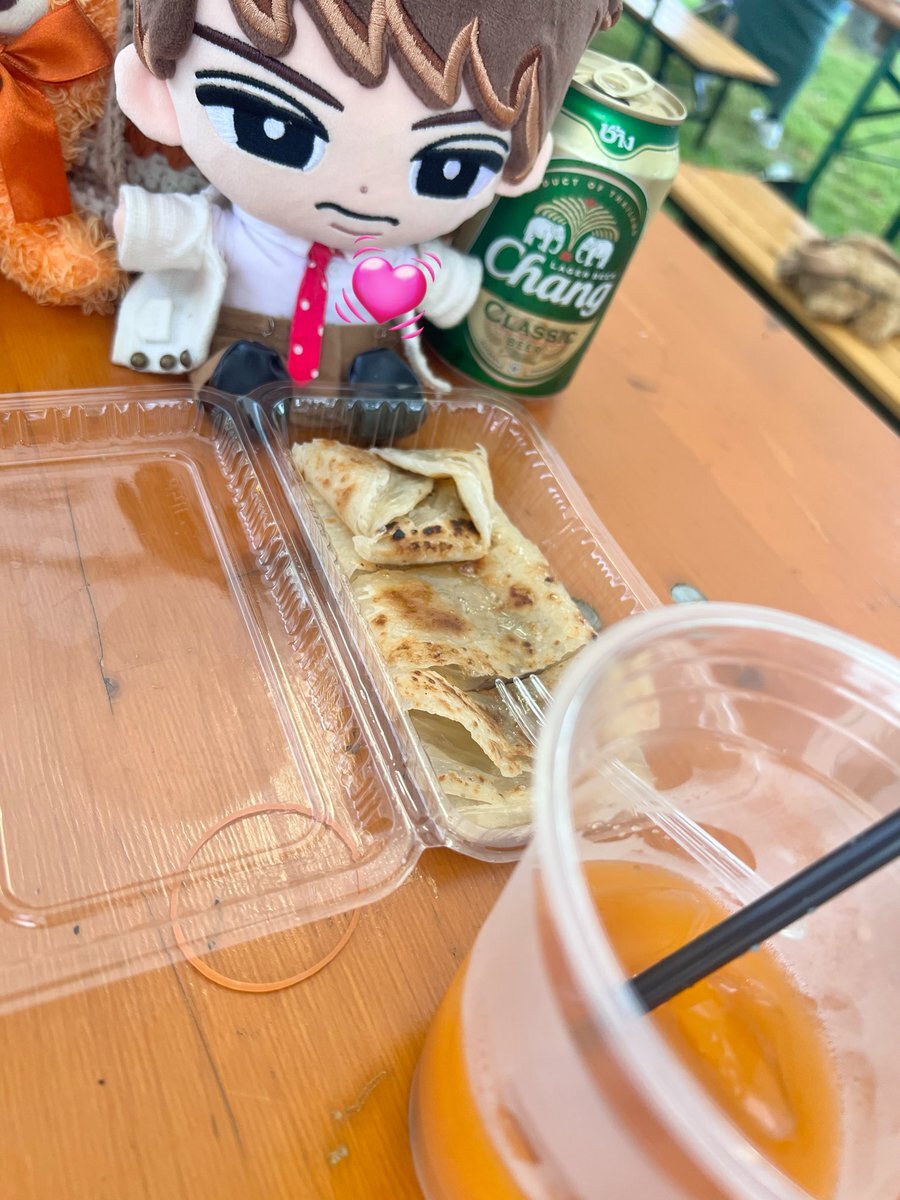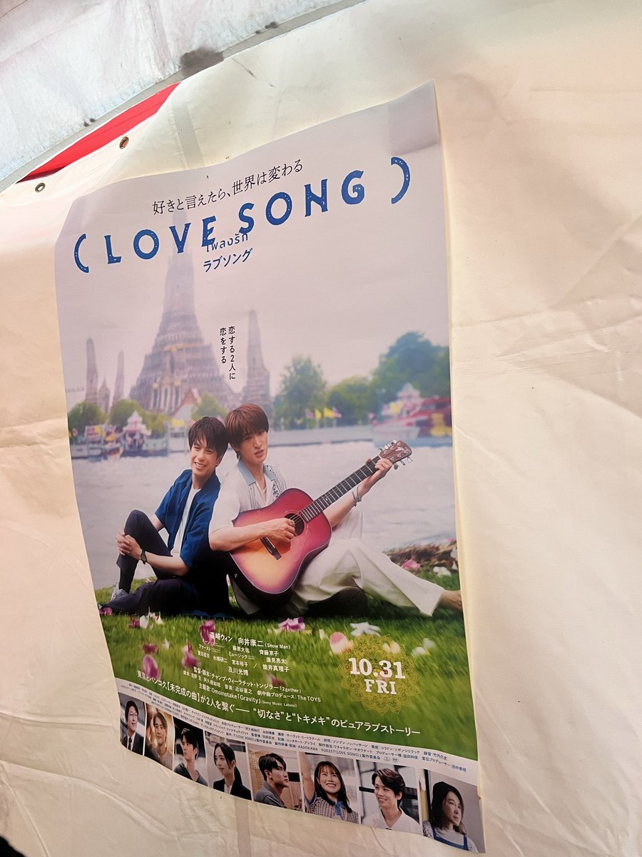 ビール飲めないので、練乳たっぷりなタイティーとはちみつ🍯のやつ🫰🏻 (LOVE SONG)のポスターとフライヤー🌻🌻ありましたぁぁ🫶🏻🧡 司会の方から"SnowManの向井康二くんがやってるマッサマンカレー"って紹介あった気がする✨🧡 #タイフェス pic.x.com/TMtop96j0o