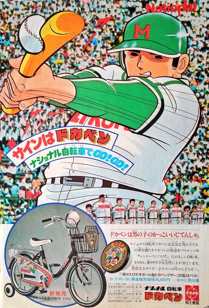 ㊗️#ドカベン 連載開始50周年🎊 ドカベン商品あれこれ ありましたねー❗️😄 ⚾️ナイル野球用品 ドカベンキャラのTVCMがありましたが 私は見たことないのです😢 🚲ドカベン自転車 ナショナルブランドですよ 👝ドカベンバッグ #タイムラインをあたかも昭和にする #水島新司 #昭和の広告 pic.x.com/oR9OmM2sML