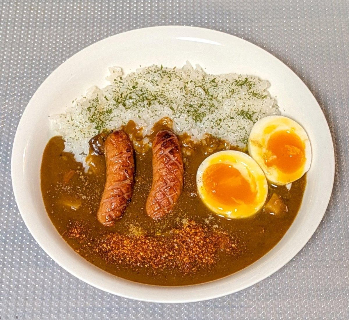 今日の夕食 半熟卵のソーセージカレー #パセリ #クミン #コリアンダー #ターメリック #ガラムマサラ #ハバネロトリニダードスコーピオン超激辛スパイスHachi #ボンカレー辛口 #ディナー pic.x.com/608TGUNpO4