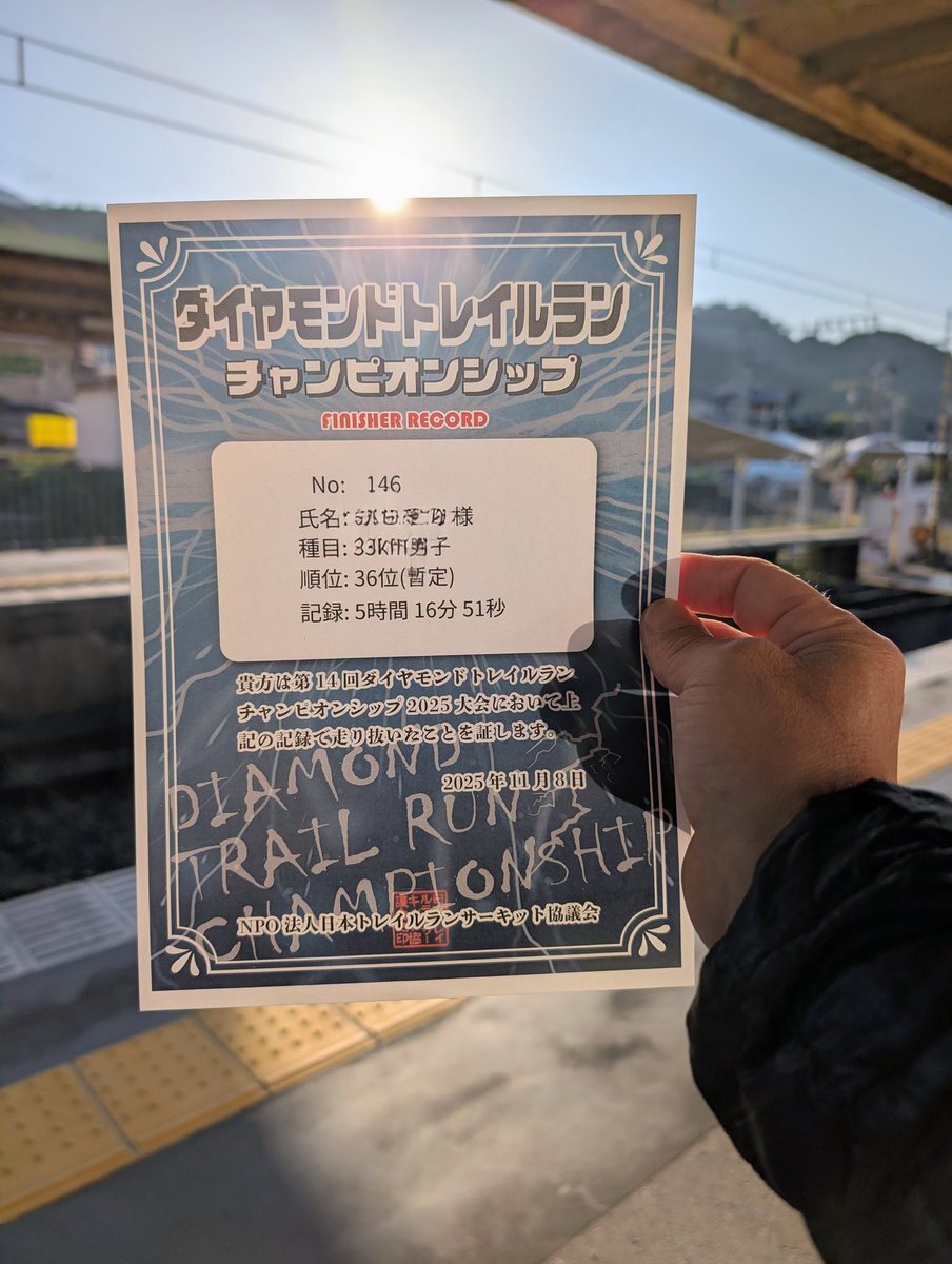 ダイトレ🏃‍♀️ ランナーのレベルが高過ぎ 若者ホント鬼強 信じられないぐらい 俺より強くて、速くて 感動させられた 女子には3人抜かれた キツイのに来年もエントリーと思った 来年の秋はダイトレ1本☝ 36位(暫定) #ダイトレ pic.x.com/9RysrGzhjT