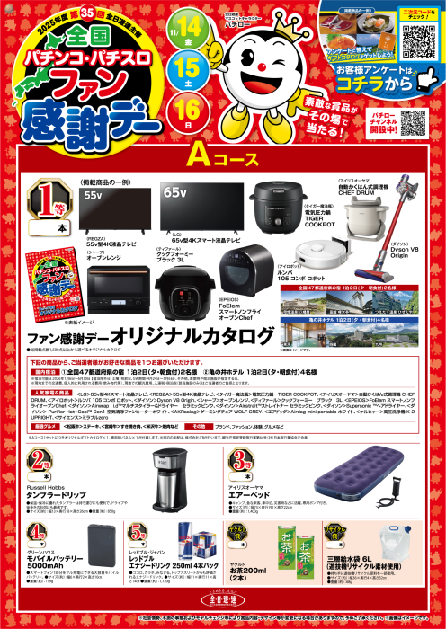 ついに明日から #ファン感謝デー です!!!! ダイナム新井店は ドドドンッと3セットを準備しております😃 1等は… #カタログギフト ダイソン・ルンバなどから好きな景品を お選びいただけます!! #50型テレビ スマートTVでYouTube等が鑑賞可能! #ダイナム pic.x.com/U7zv2hAvCD x.com/dynam_00065/st…