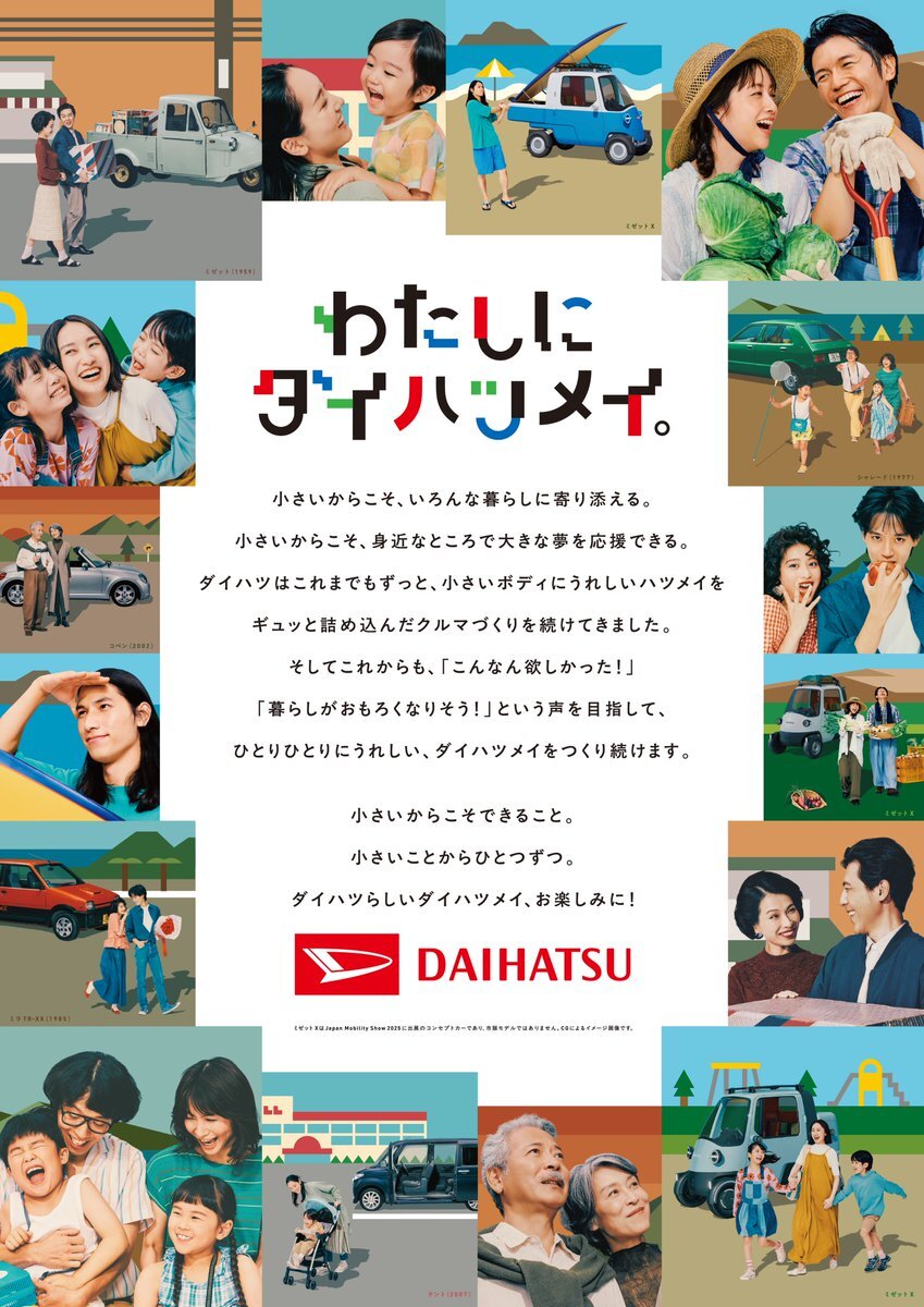 / ダイハツの新しい企業広告が始まります。 \ 「わたしにダイハツメイ。」 小さいからこそできること。 小さいことからひとつずつ。 これからもダイハツらしい“ダイハツメイ”を発信していきますので、ぜひ応援をお願いします✨ 詳細は下記サイトをご確認ください。 daihatsu.com/jp/company/dai…